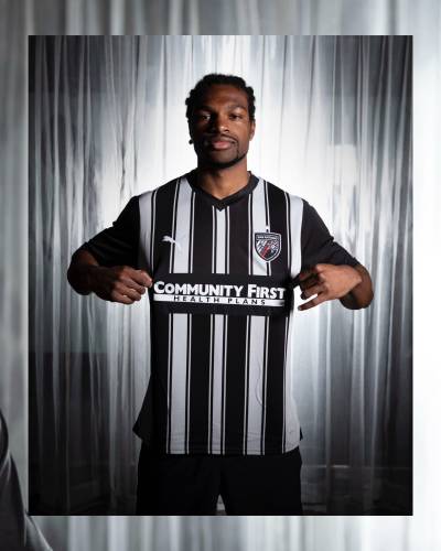 Partner logos are in white/monochrome and the Texas-based side’s first-choice kit is completed with black shorts and socks.