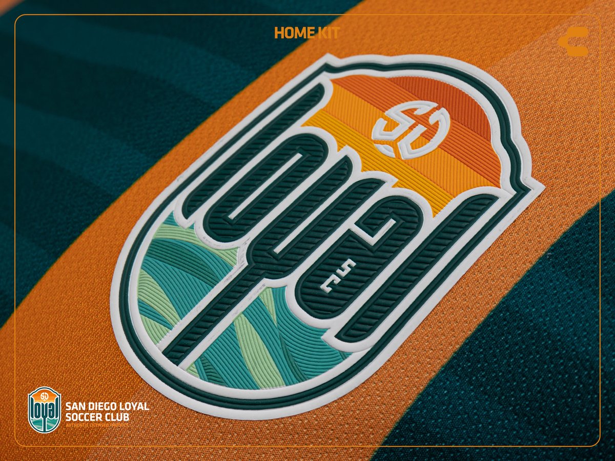 The design takes on a classic look, with a sunset stripe crossing diagonally through the club crest, representing the sun rays that shine throughout the days in America's Finest City.