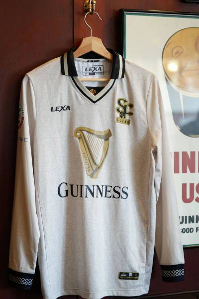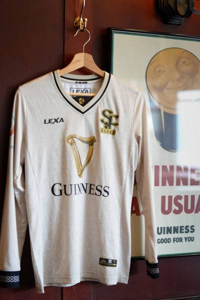 Featuring the logos of Irish stout Guinness, in fact the whole of the new shirt is dedicated to the iconic alcoholic beverage through the cream-and-black colouring, with further decoration coming by way of sparing use of gold.