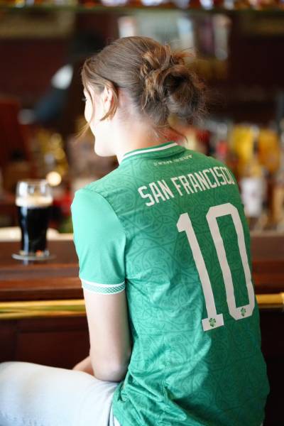 In addition, the Irish Cultural Center of San Francisco’s logo appears on the sleeve and the kit is completed with green shorts and socks.