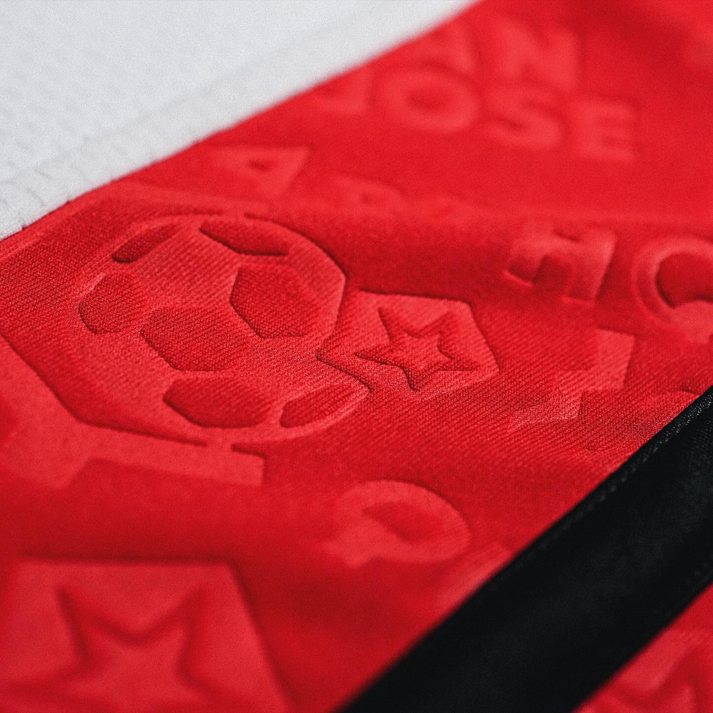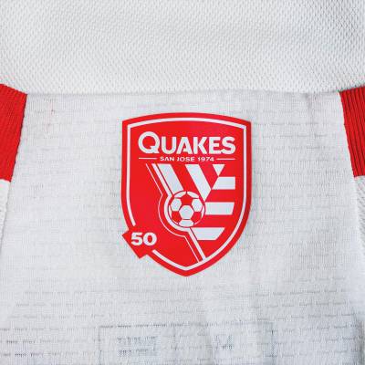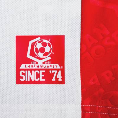 This jersey reintroduces the Earthquakes' original red and white colours and is distinguished as the first MLS jersey to feature a retro crest.