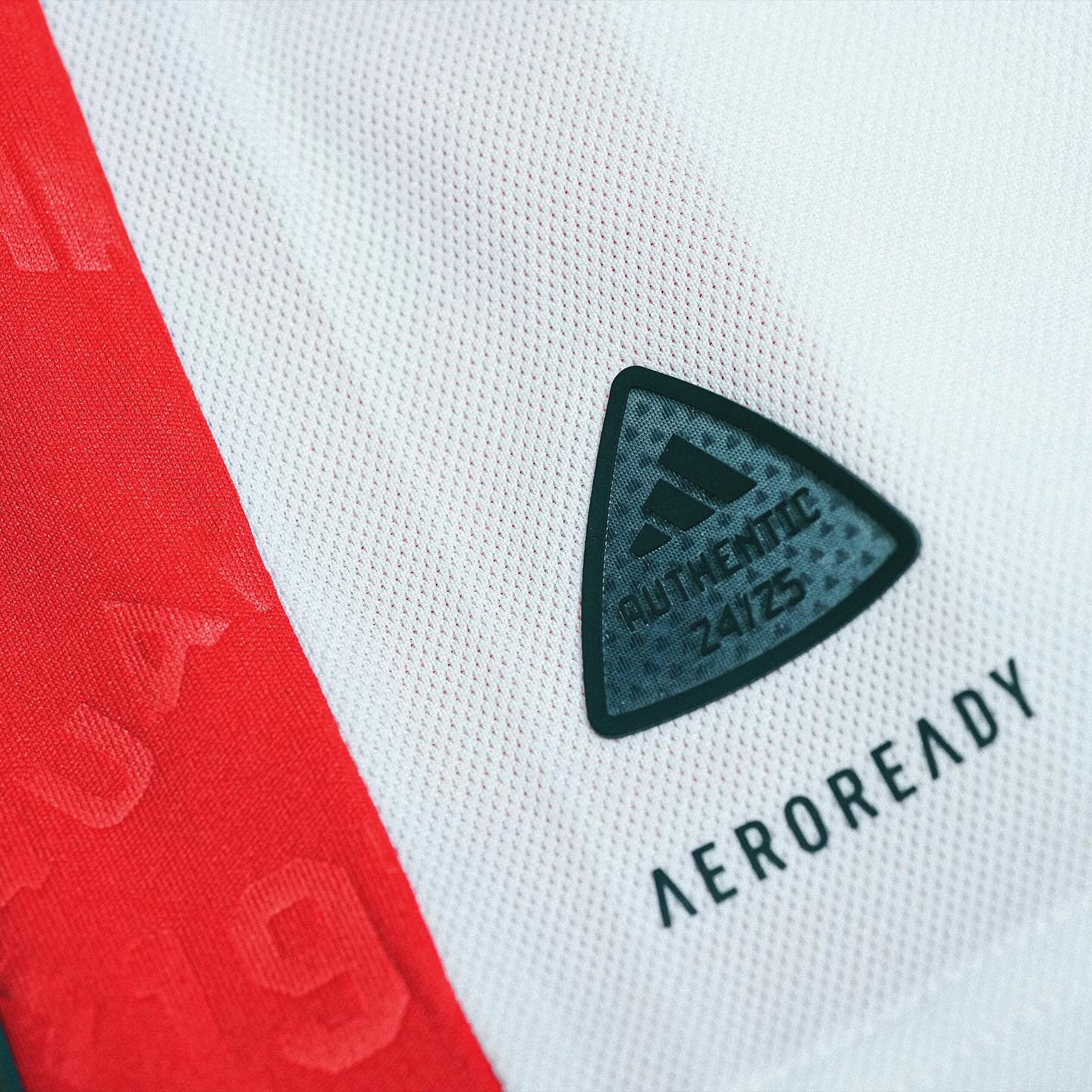 A special jock tag at the hip commemorates the club's original logo from 1974, while the back neck spotlights the current primary logo in red, adorned with a "50" to celebrate the anniversary. The kit, made with adidas AEROREADY technology, is completed with white shorts and socks, each featuring three red stripes.