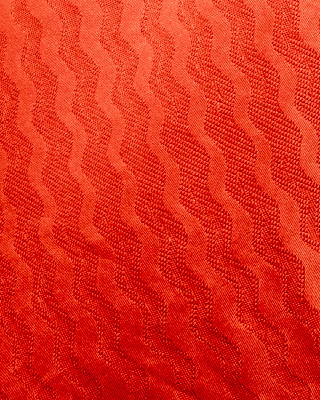 A jacquard textured pattern is integrated into the fabric across the main body panels. The pattern is visible throughout the shirt and continues onto the reverse. White shoulder and side inserts are constructed from a contrasting mesh fabric, designed to support airflow during match use. A Fila wordmark is placed centrally below the collar on the upper back, with an additional lion head graphic positioned beneath it as a secondary club reference.