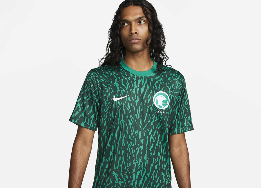 The Middle Eastern international side’s 2022-23 primary-change release from Nike is in “Malachite” and “Pro Green” with white detailing.