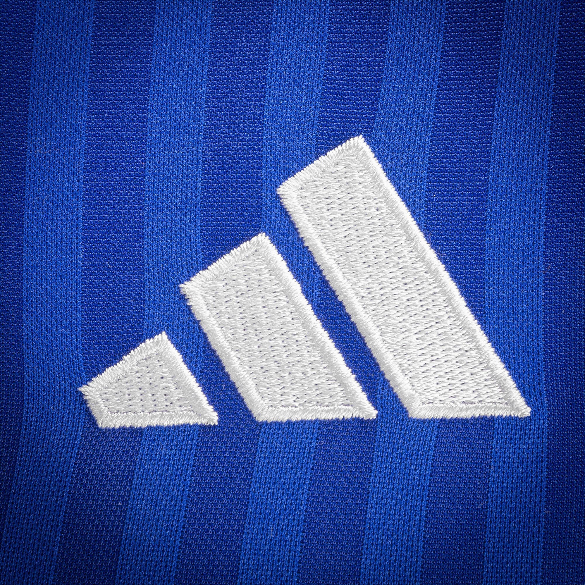 The latest primary release, carrying the branding of adidas and delivered by way of 11teamsports, is in the famous blue with a jacquard of thin tonal striping and trim in black and white.