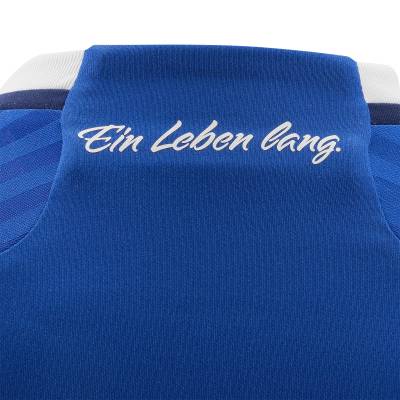 The team name features in the central sponsorship position, contrasting, as with all the detailing - including the “Ein Leben lang” (“Forever”) detail on the upper back - in white, and the kit is completed with white shorts and blue socks.