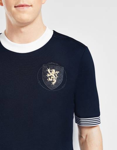 Celebrating the Scottish Football Association’s century and a half of establishment, the new commemorative release is in navy/dark blue with embellishment, much of it tonal, kept to a minimum.