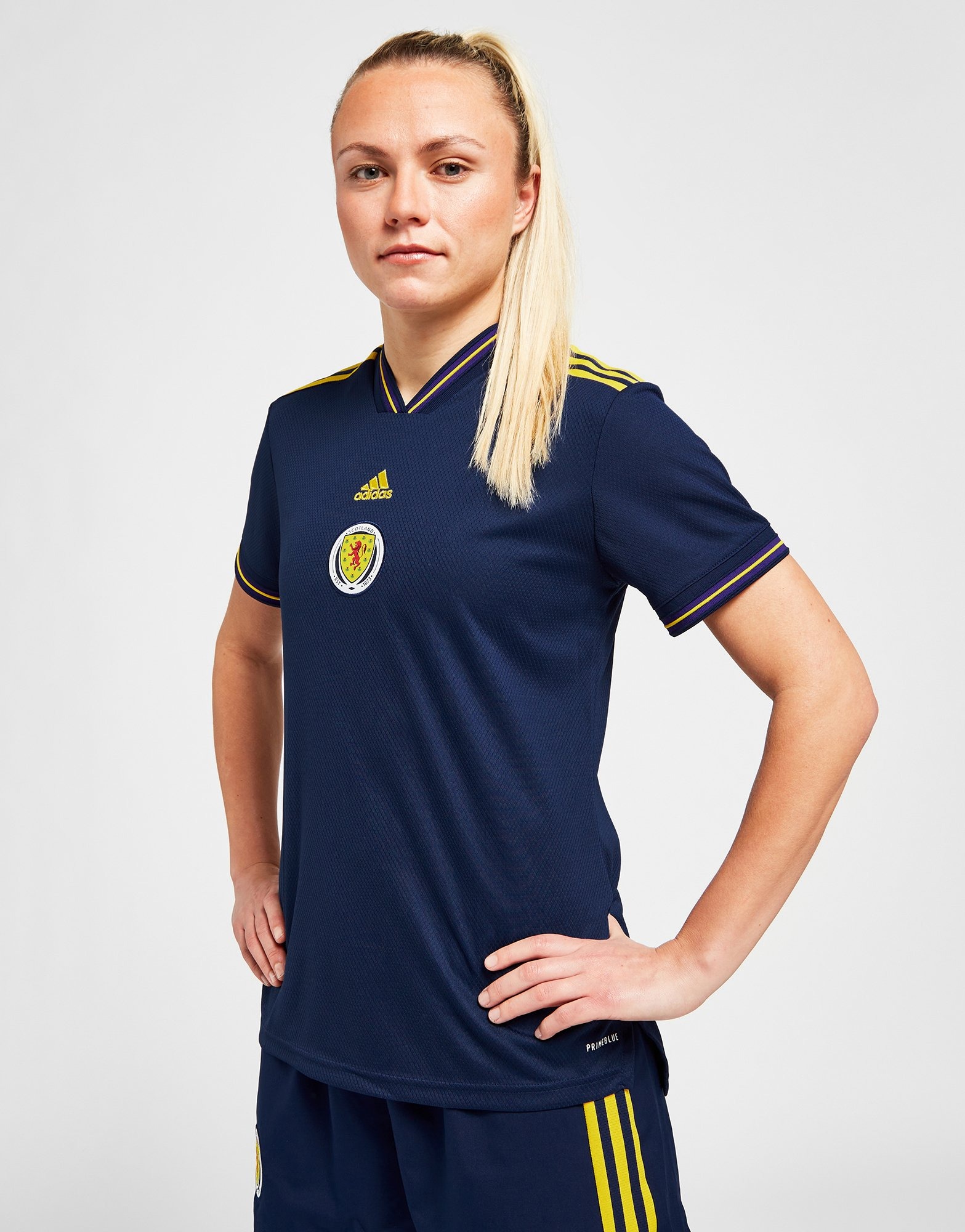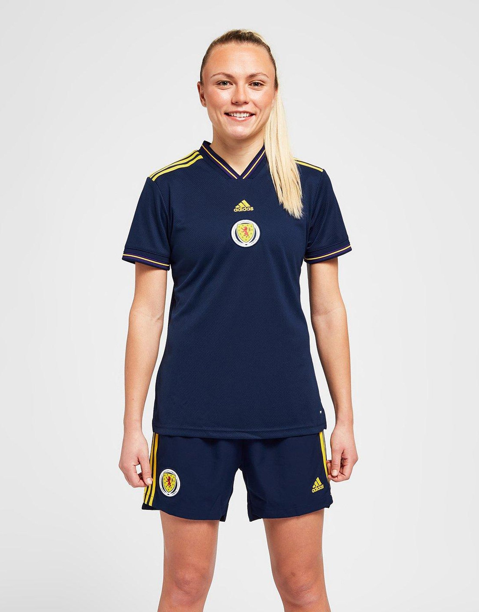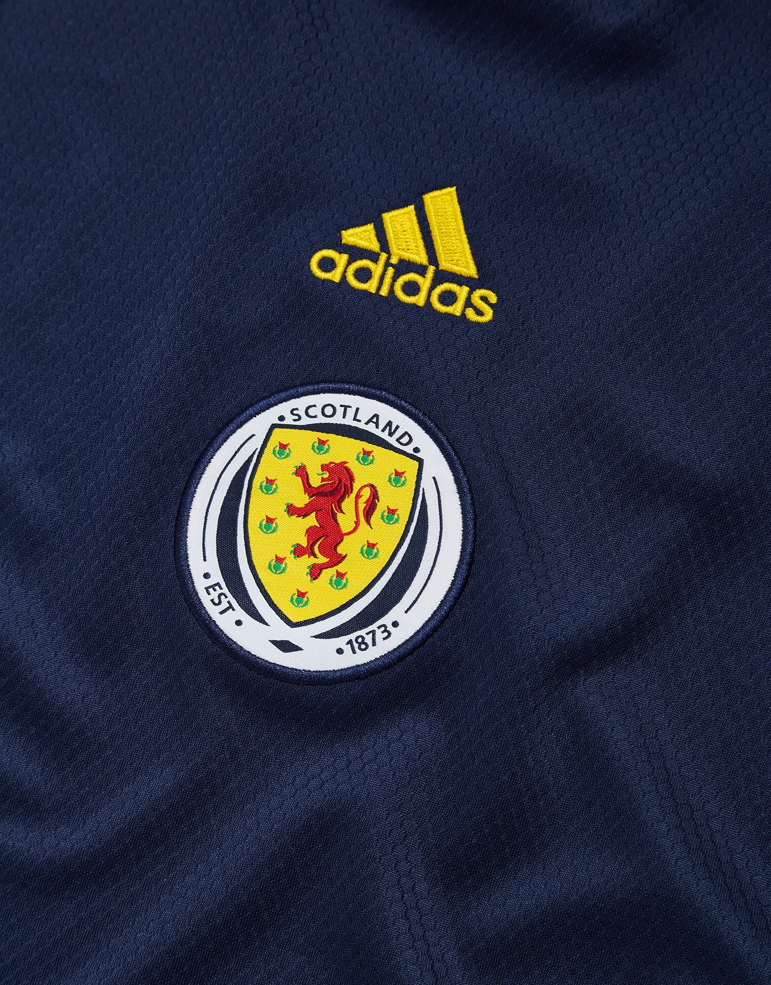 The shirt has a ribbed neckline for extra stretch, short sleeves, the iconic Scotland crest and adidas logo to the chest.