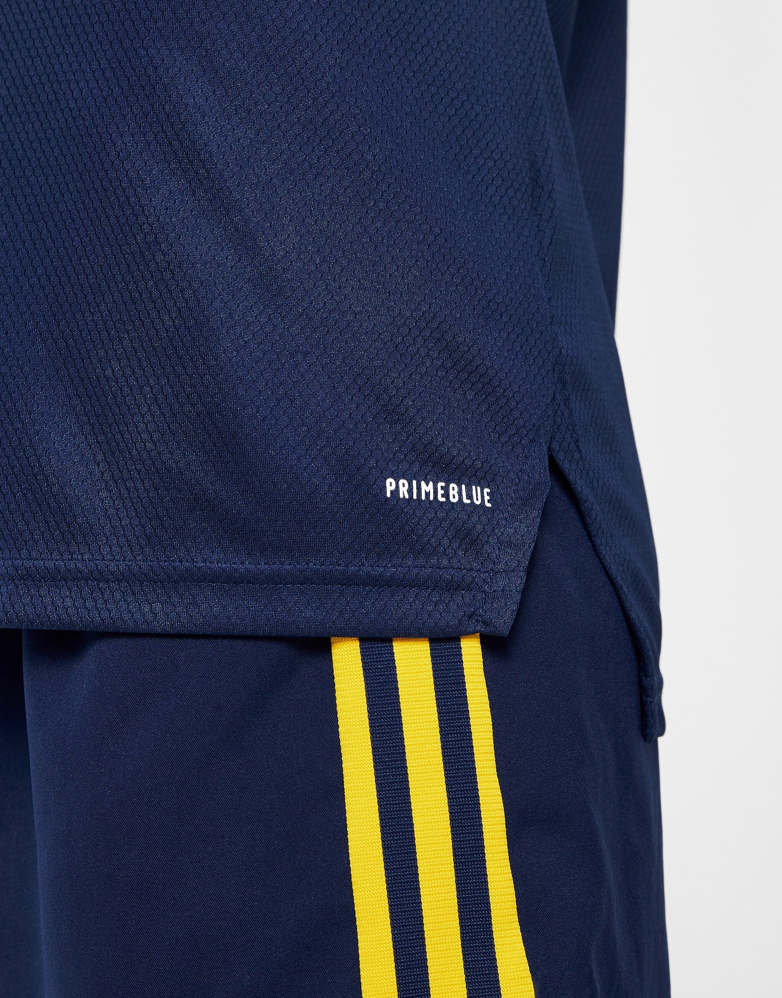 The navy blue kit features the iconic adidas three stripes, and the material is part of the adidas Prime Blue collection - with a high-performance yarn made with 50 per cent parley ocean plastic. That's upcycled plastic waste intercepted on shorelines and coastal areas, which prevents it from polluting our oceans.