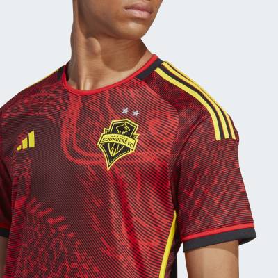 The Bruce Lee Kit marks the first time that the Sounders have incorporated the colour red into their uniform, which is made even more striking with the addition of sunbeam yellow accents. The jersey chest features a hand-drawn dragon, symbolising Bruce Lee's strength, power, and forward-thinking spirit, as well as that of Sounders FC.
