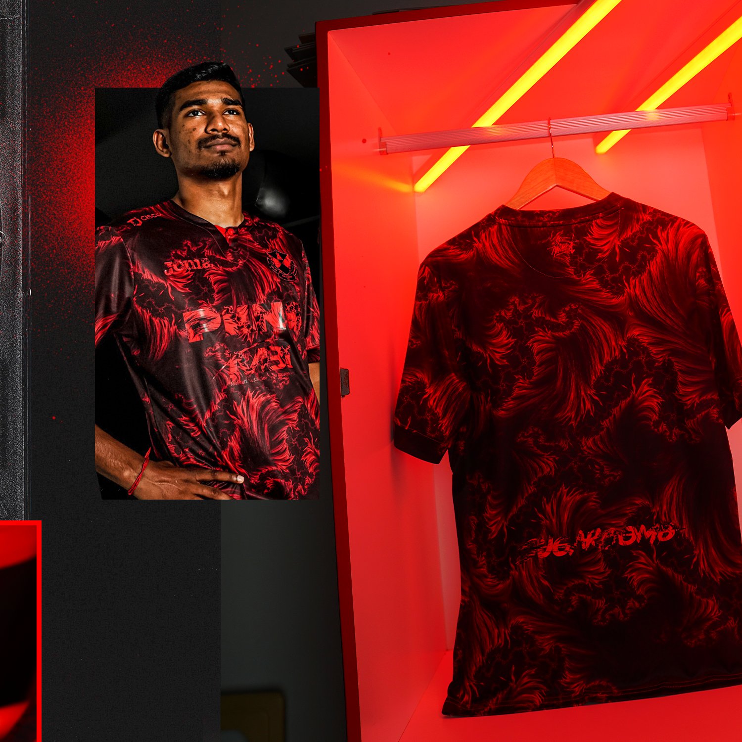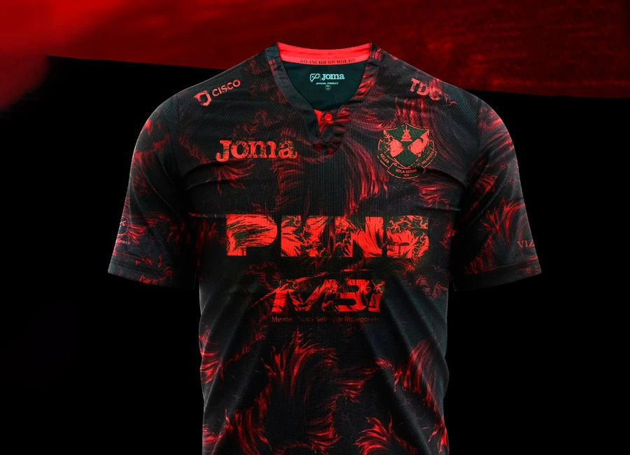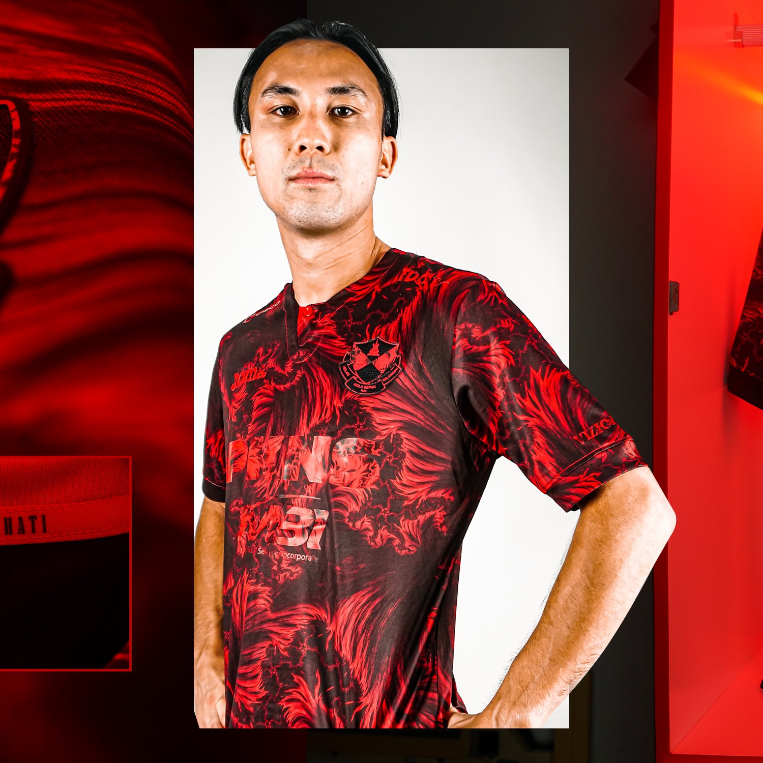 A collaboration with Malaysian celebrity, and Red Giants fan, Altimet, the shirt crest is also in red and black, with the Spanish brand’s logo in red too.