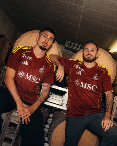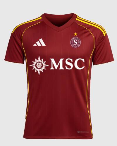 The shirt is predominantly garnet, a colour long associated with the club, and includes yellow accents inspired by the canton’s flag. The shirt features yellow adidas three-stripe branding running across the shoulders, paired with tonal pinstripes on a garnet base and subtle yellow piping that highlights the seams.