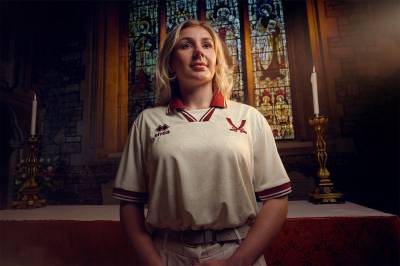 The collared release has, in maroon again, a simple crossed-blades version of the crest - harking back to the 1980s - and the Italian supplier’s logo matches this and the trim on the ivory-cream shorts and socks, while the women’s team have maroon shorts.