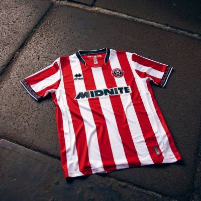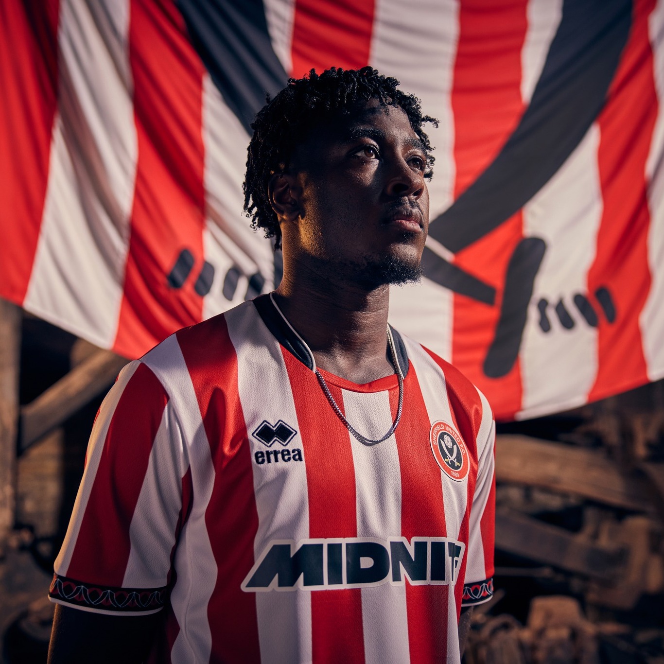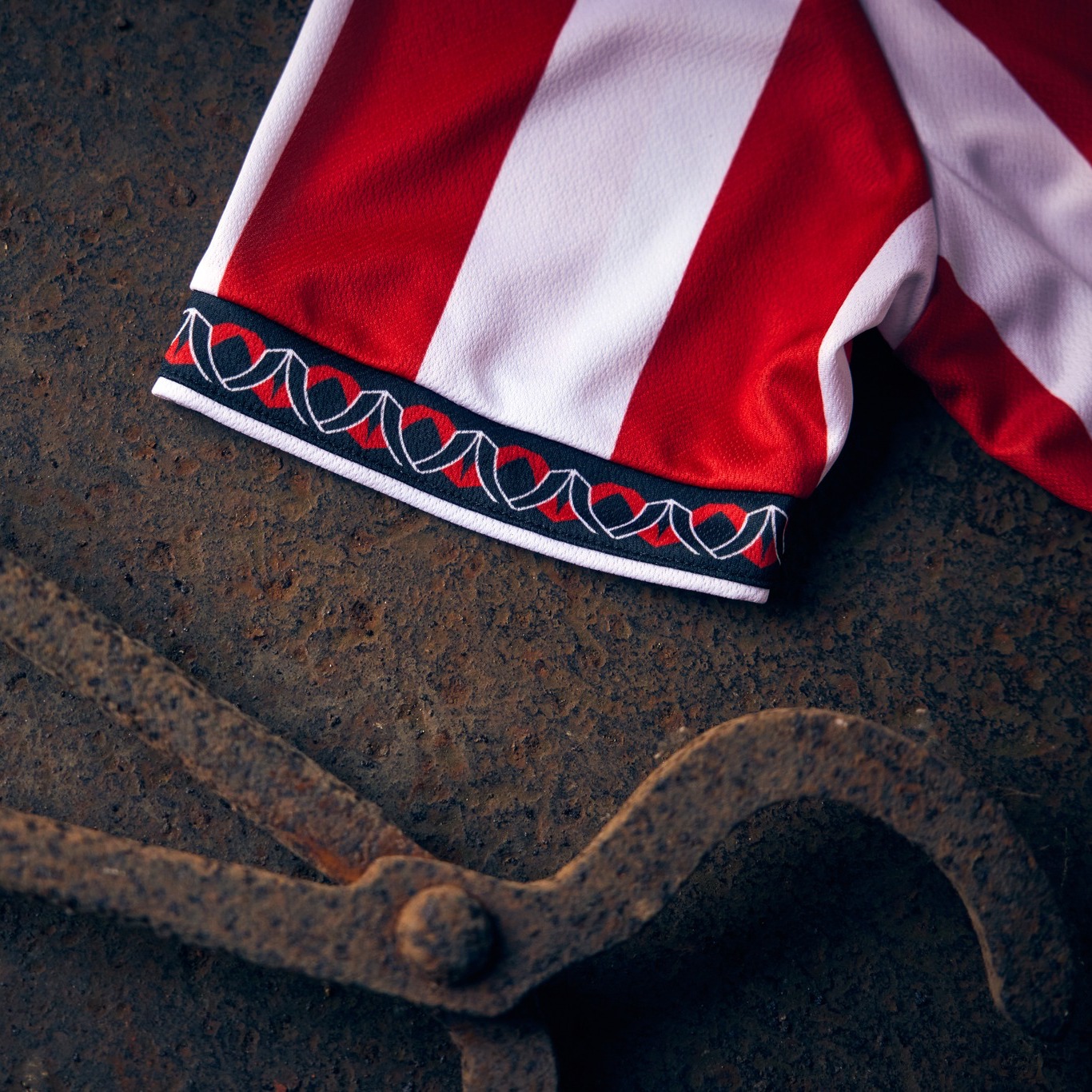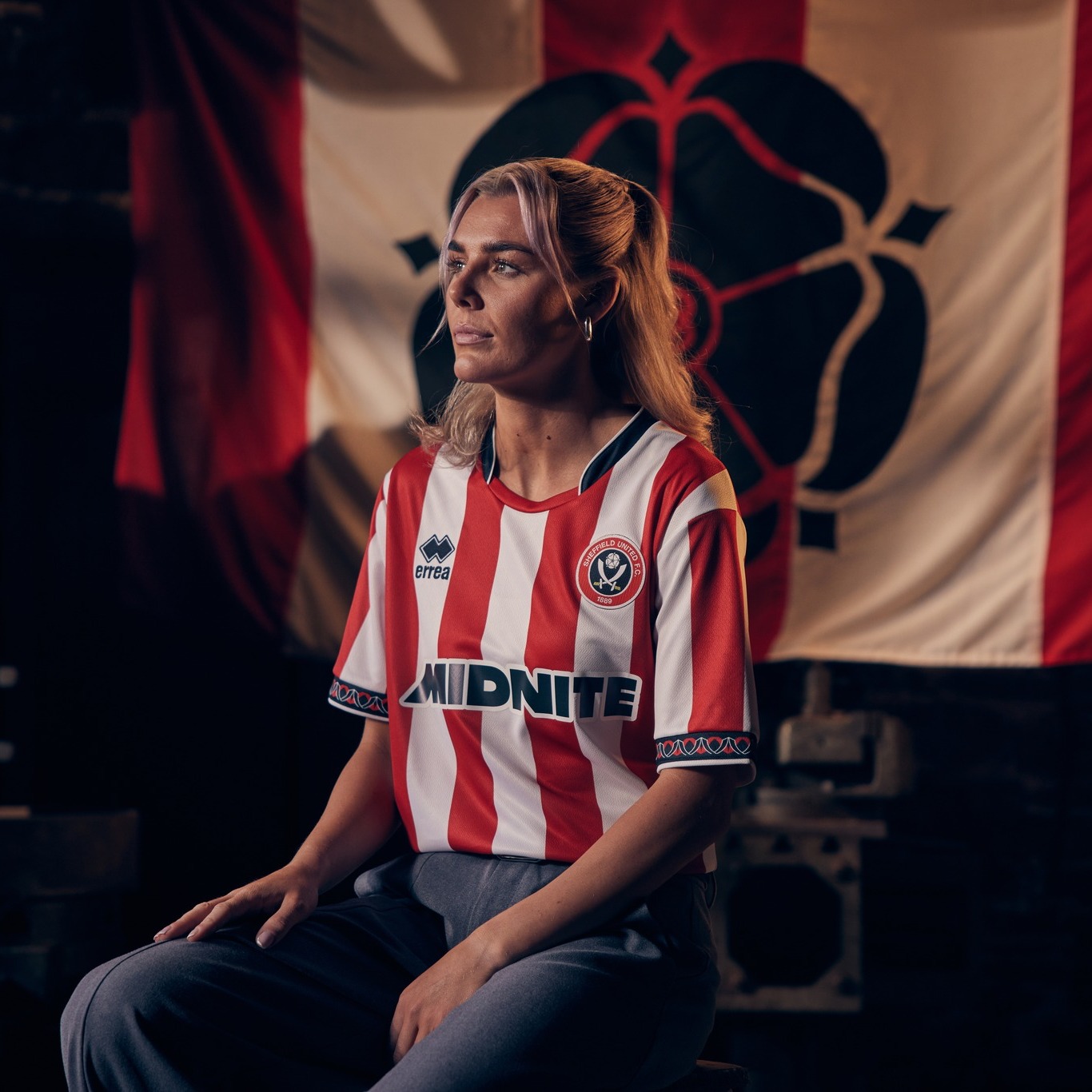 The unveiling took place at Wortley Top Forge, a seventeenth century wrought iron site that symbolises Sheffield’s industrial past. The shirt retains the club’s red and white stripes, and blade graphics run around the sleeve cuffs and the back of the neck in a nod to the city’s steelmaking heritage.