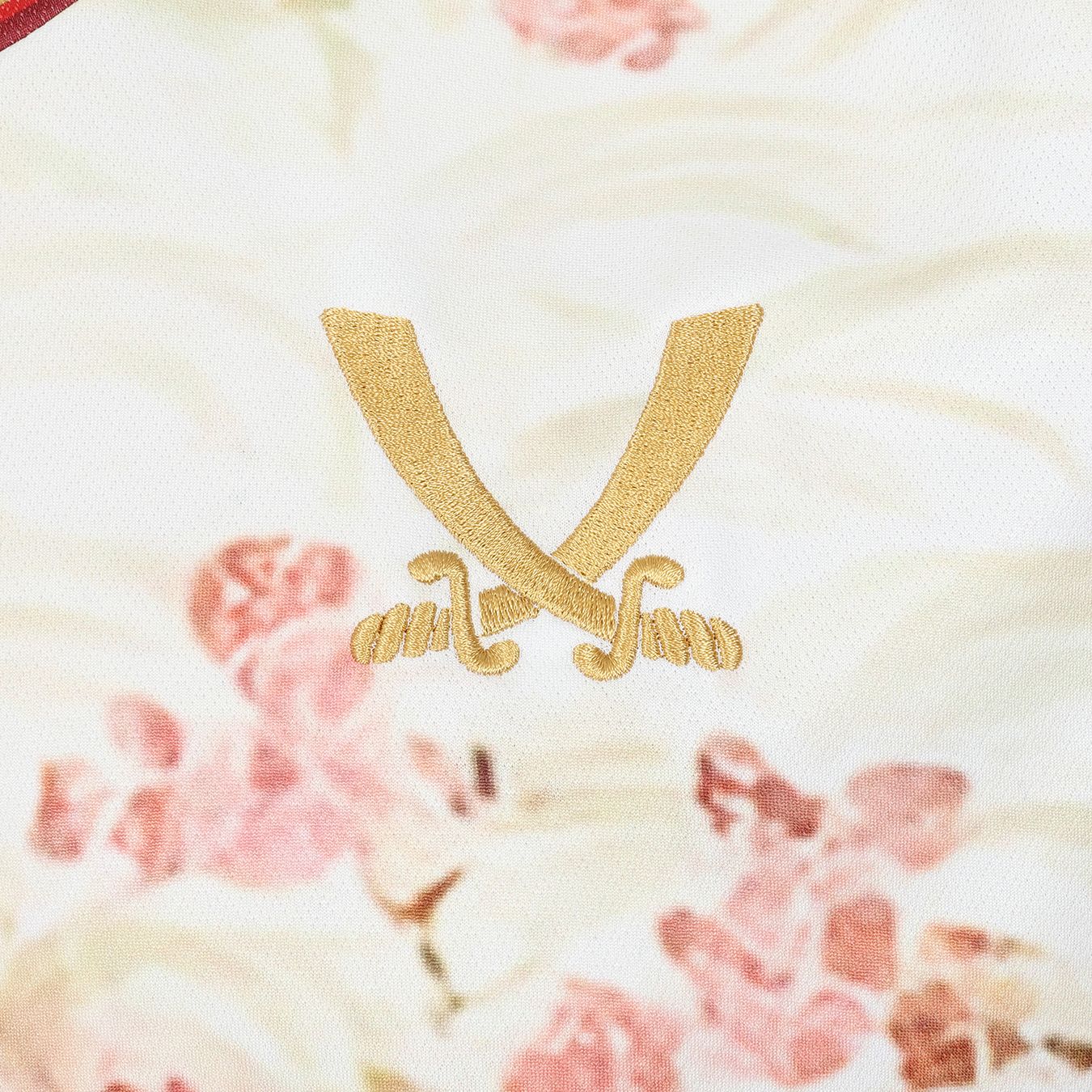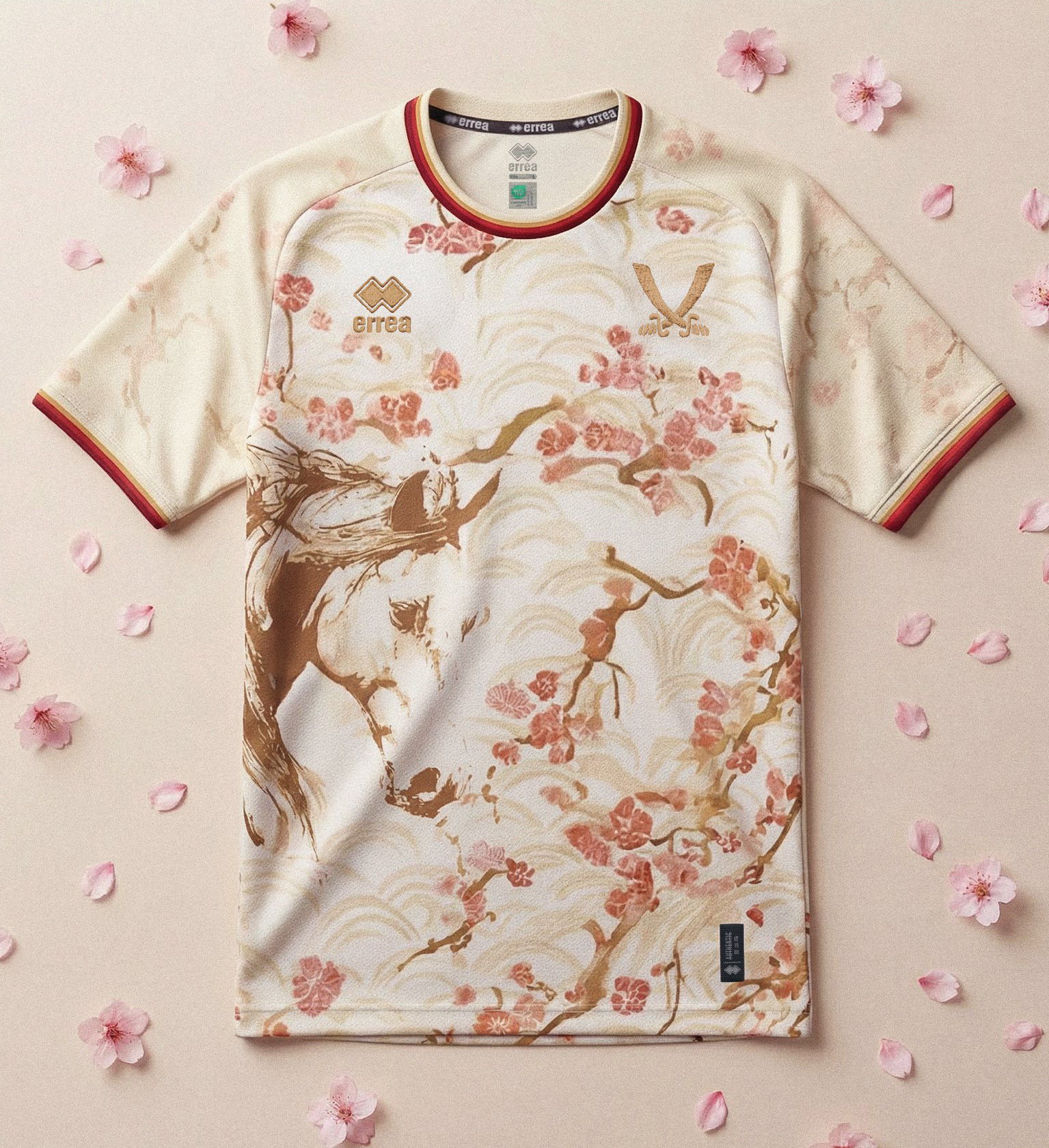 The 2026 edition aligns with the Year of the Horse and is presented as a warm-up jersey with a cream base and an all-over graphic across the front, sleeves and back. A large-scale horse illustration is integrated into the design, combined with flowing line work and floral elements that appear throughout the fabric.
