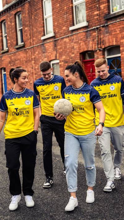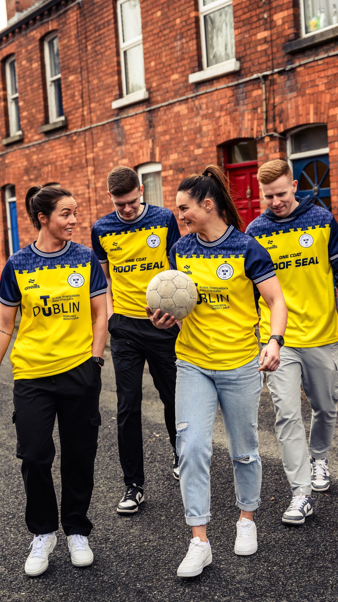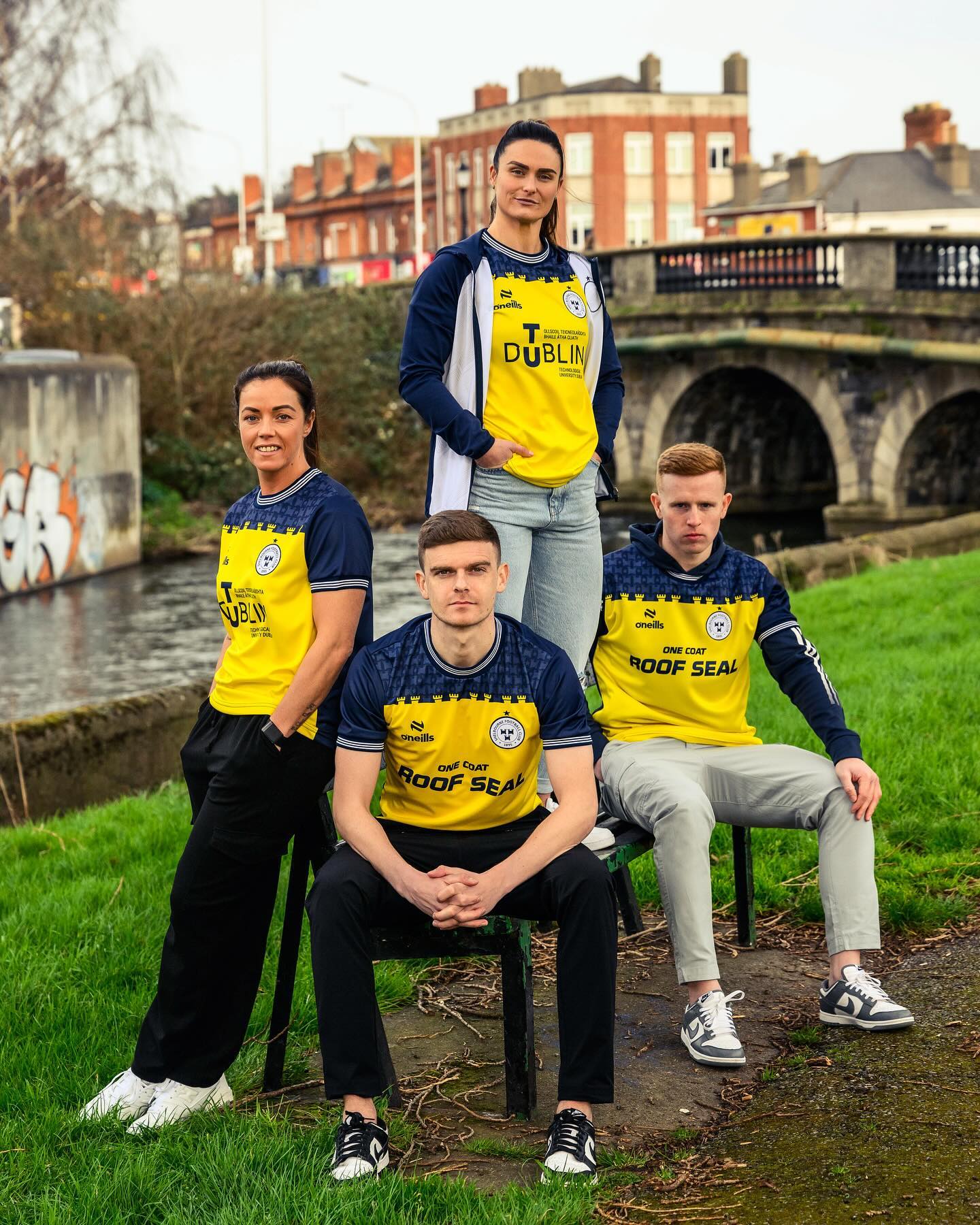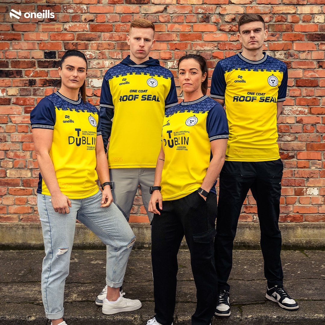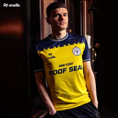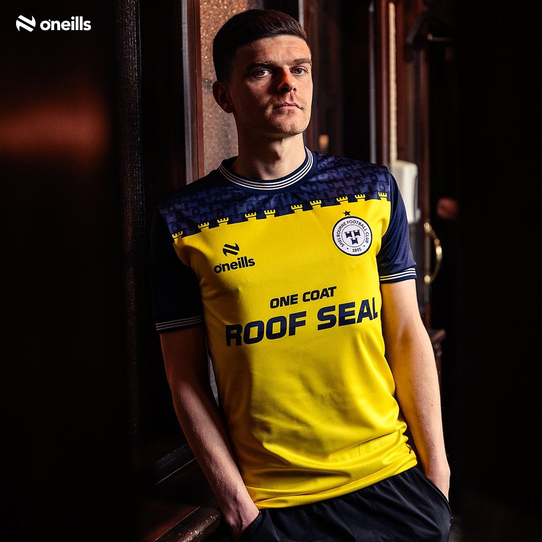 The new change release from O’Neills is in yellow with shades of blue and the upper portion is dedicated to the castles that appear on the crest, with a crenellation-based divide between the two main colours.