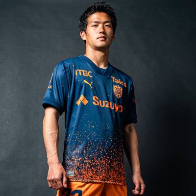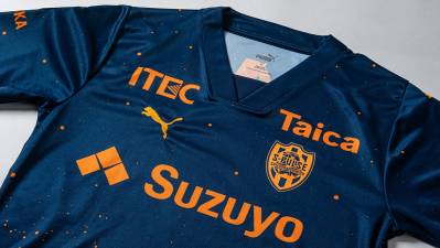 The latest 2024 Puma release is in a deep blue with orange and is marketed as representing the view of Shimizu at night, incorporating the IAI Stadium Nihondaira - “Aista” - home ground, the city and the port, with Mount Fuji as a backdrop.