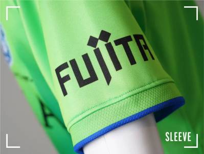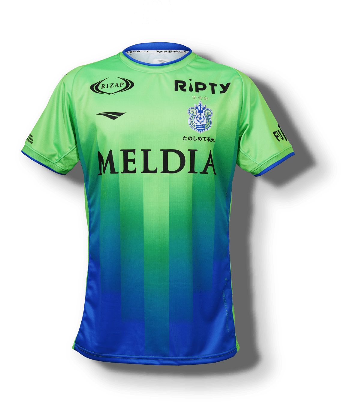 Inspired by the lapping waves of the sea on which, by way of the Sagami Bay, the club’s home city of Hiratsuka sits, the Penalty release is green transitioning to blue with a gradient effect and stylised staggered striping.