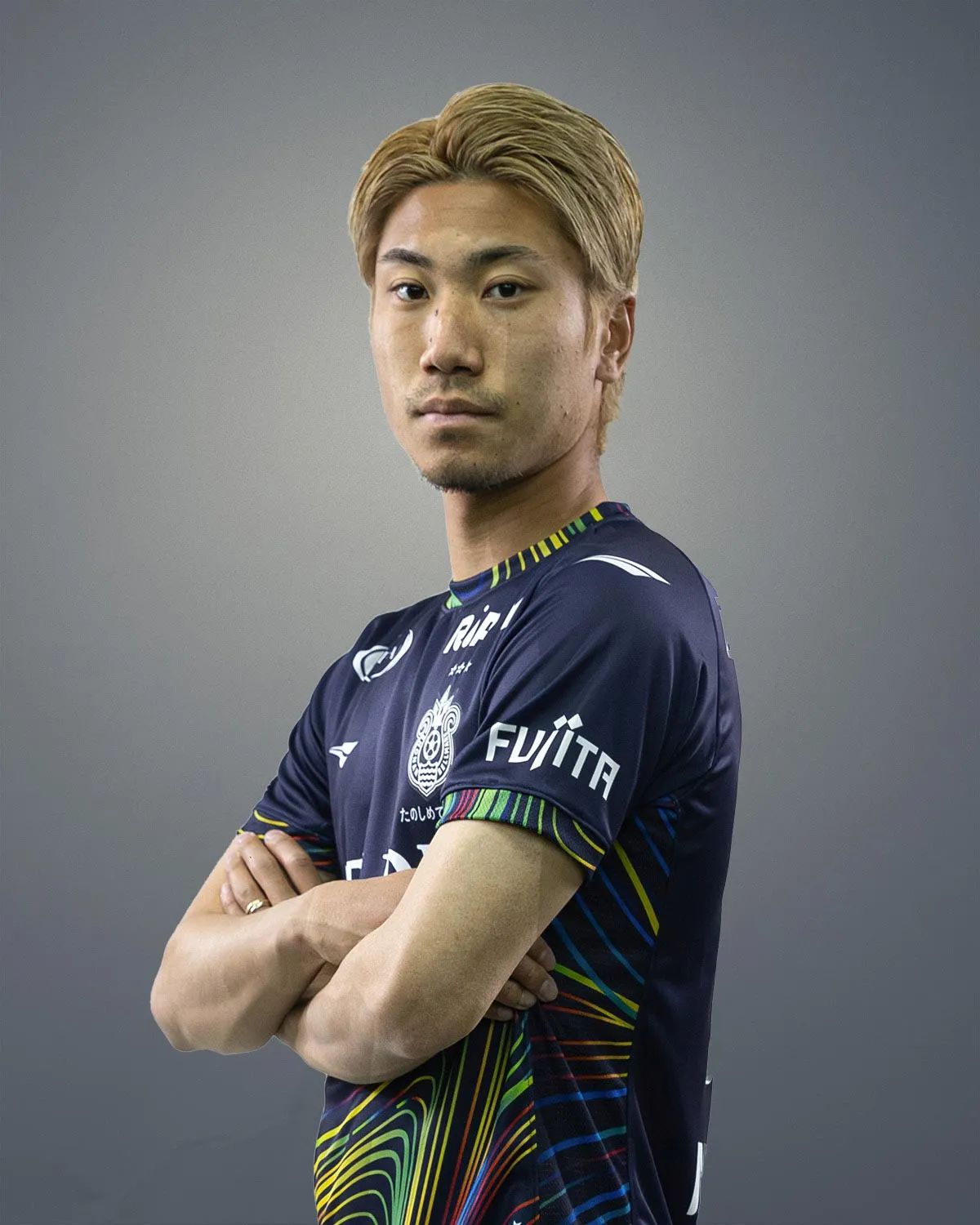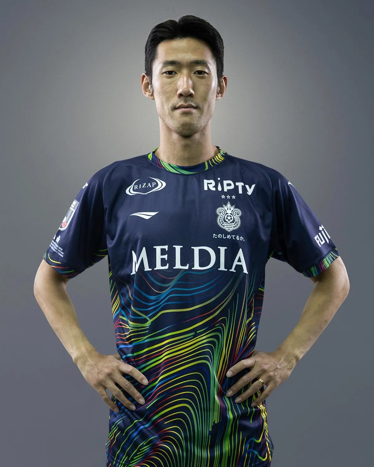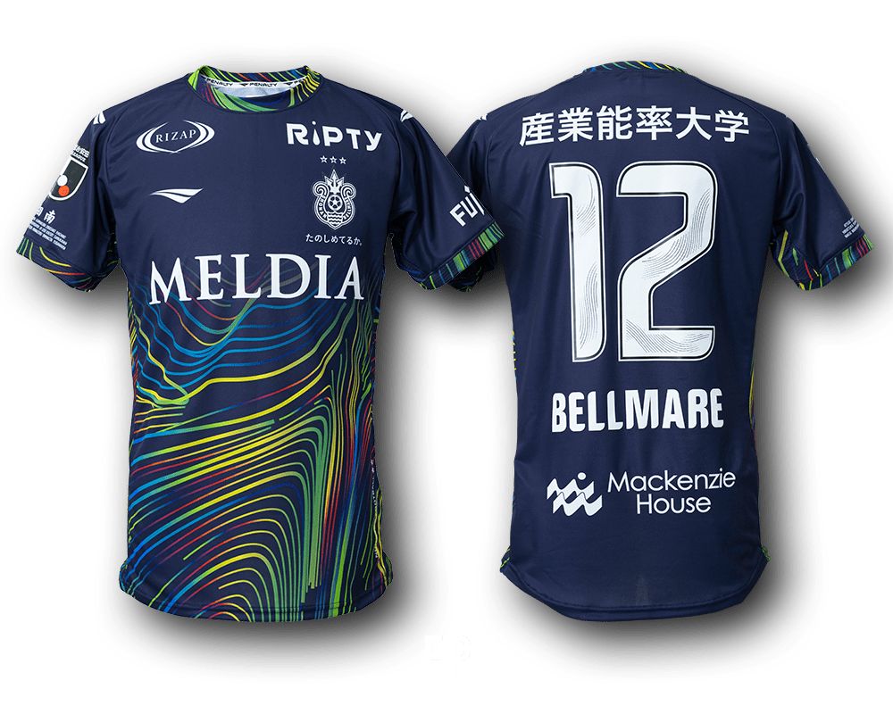 Honouring the Shonan Hiratsuka Tanabata Festival with colourful graphics evoking bamboo decorations, streamers and colours in the night sky - which is referenced in the main fill of navy - the Penalty 2024 design is overlaid with branding, including the crest and partner/sponsor logos, in white.