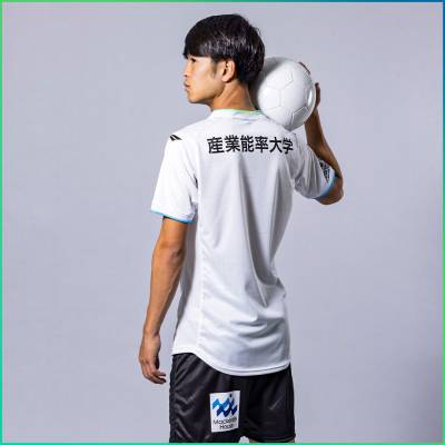The “KALEIDO” primary release for the Hiratsuka-based side is in shades of green, blue and yellow, with the graphical element intended, according to the marketing, to represent power, change and growth, while the primary change is in white with blue sleeve trim and blue and green on the neck.