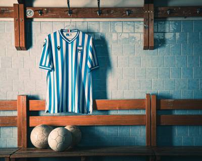 The 2024-25 primary release from Macron boasts thin white and light-blue stripes to the trunk, light-blue sleeves and a full-colour crest, while this detail is kept to blue on black on the patterned black change, which has trim in light blue and white.