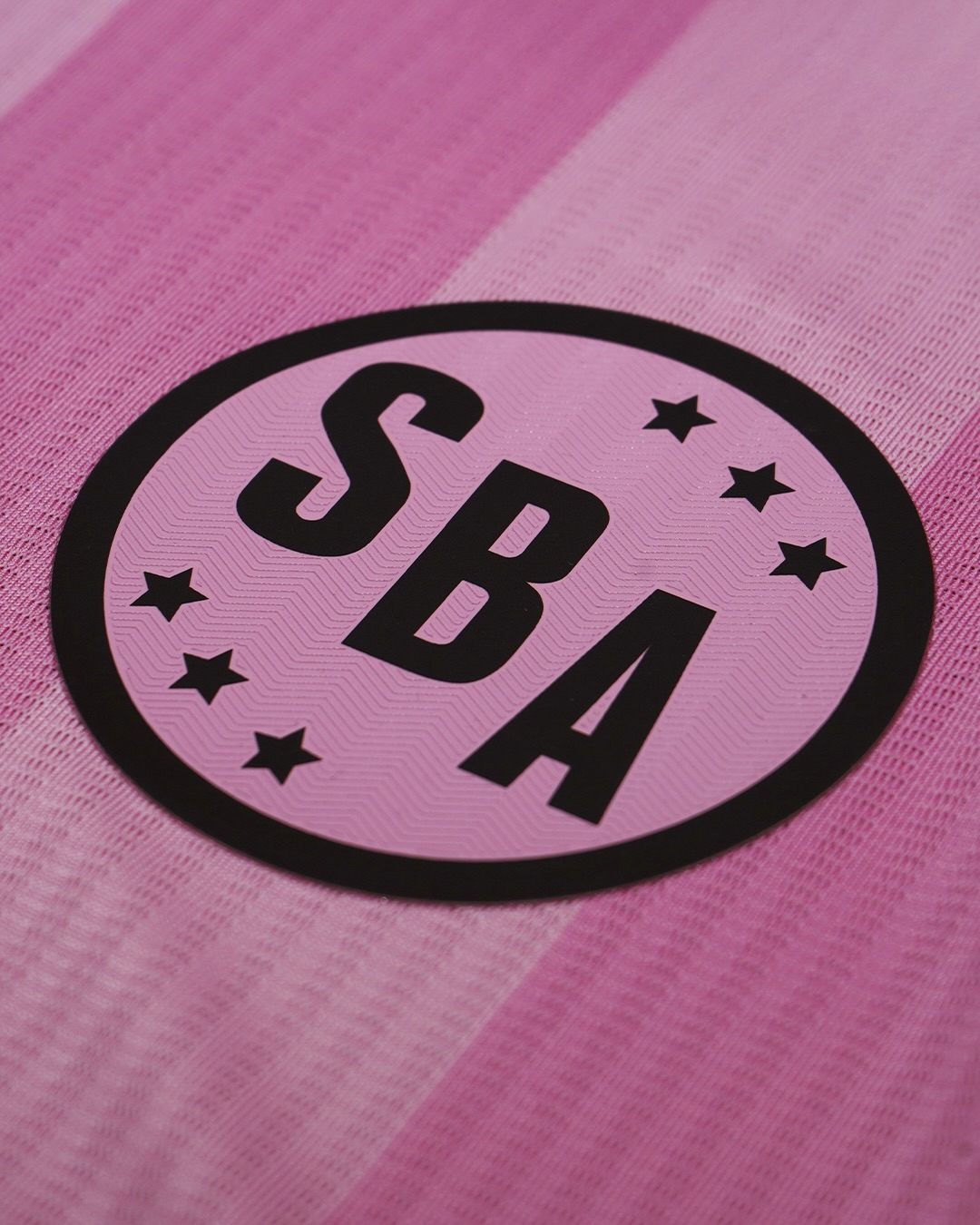The 2026 Sport Boys football jersey is presented in the club’s traditional pink colourway and features a tonal vertical striped pattern running across the front and back. Short sleeves follow the same textured finish, with clean cuffs and a streamlined cut.