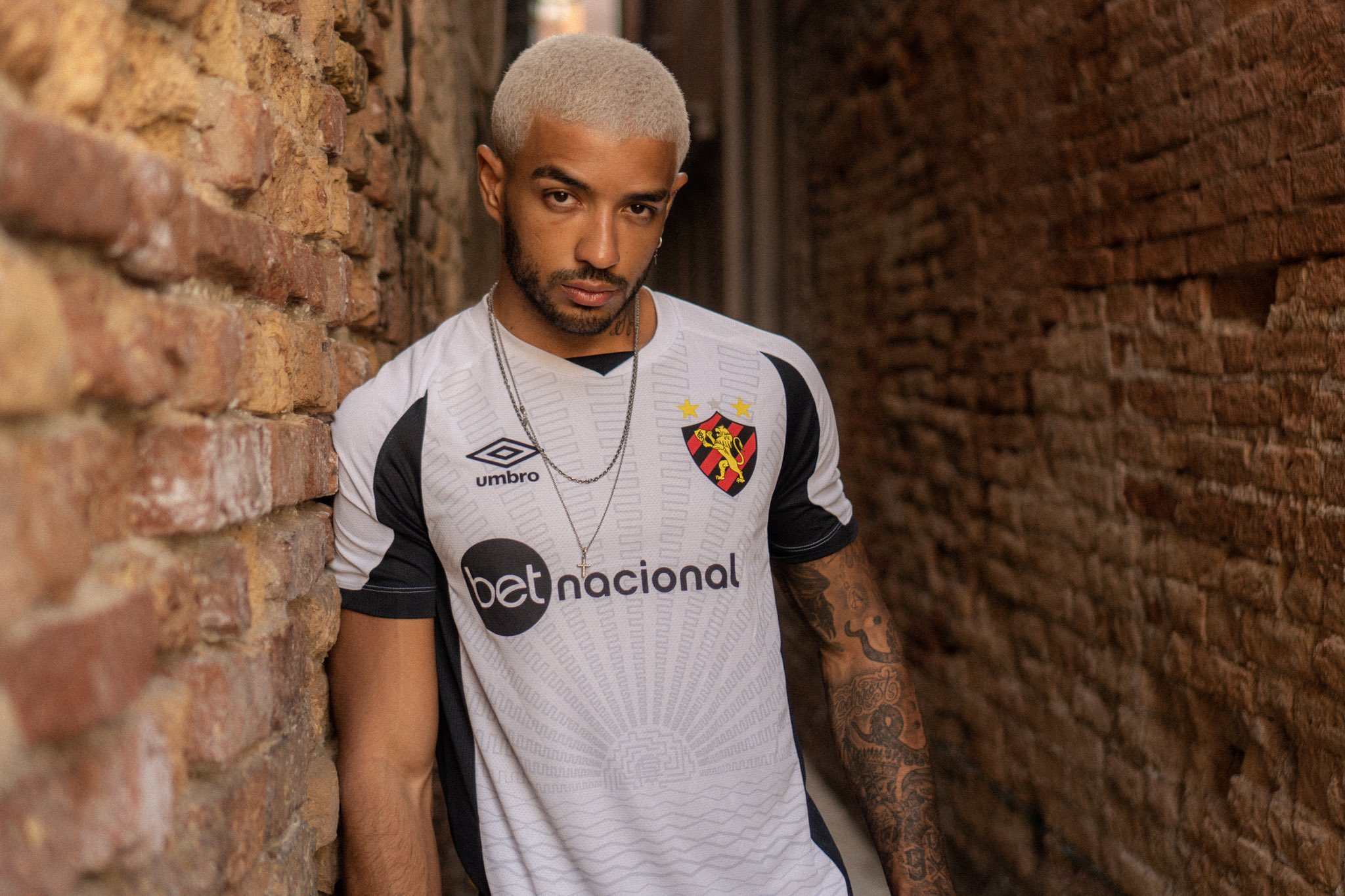 The Pernambuco state-based side are celebrating their home city’s 485th birthday with both shirts, and the primary change - in white with black - features the same background sun graphic as on the first choice.