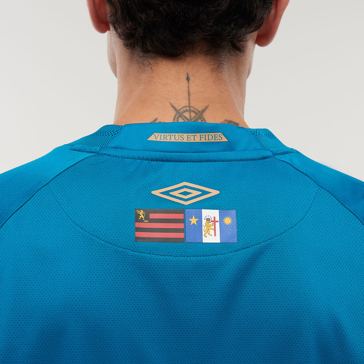 At the lower hem sits a commemorative patch displaying Recife’s coat of arms with the year 1537, marking the city’s foundation. On the back, beneath the neckline, are the flags of Sport Recife and Recife alongside the club’s traditional motto “Virtus et Fides”. The club name “Sport Recife” is inscribed on the sleeve.
