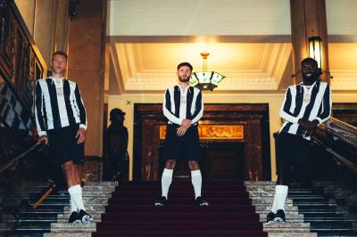 The long-sleeved jersey, inspired by the club's original 1904 kit, features a lace-up collar, black and white vertical stripes, and the 120th anniversary crest in gold.