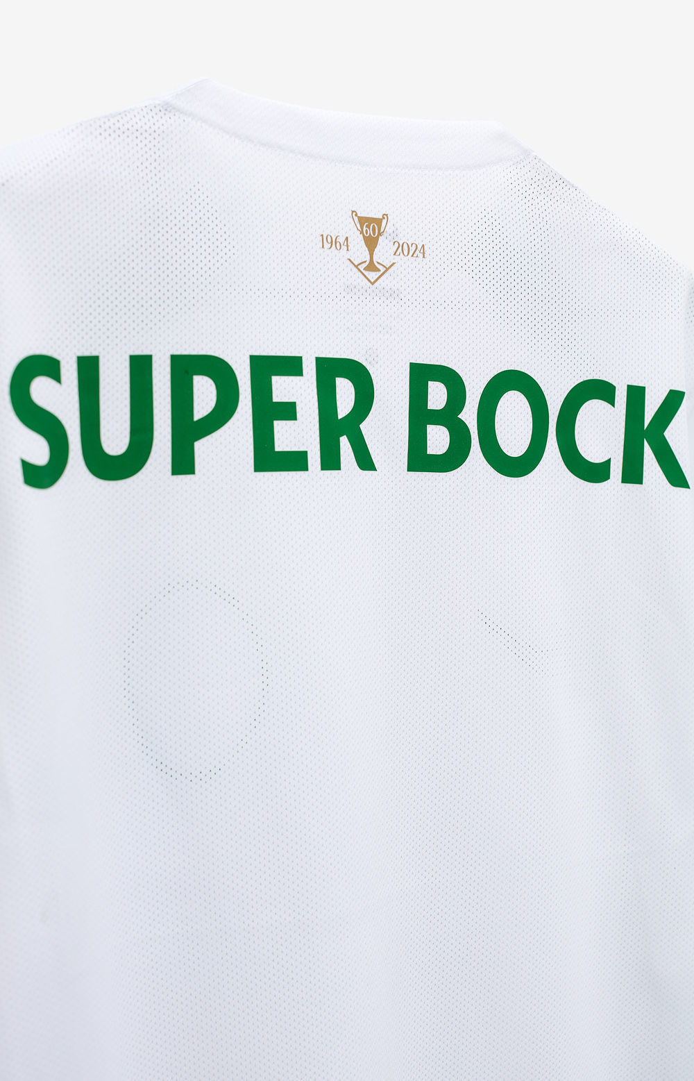 Sporting won the 1964 (1963-64) European Cup Winners’ Cup Final against MTK Budapest after a replay and this latest white Nike design for 2023-24 marks that event with special golden prints near the hem and on the upper back.