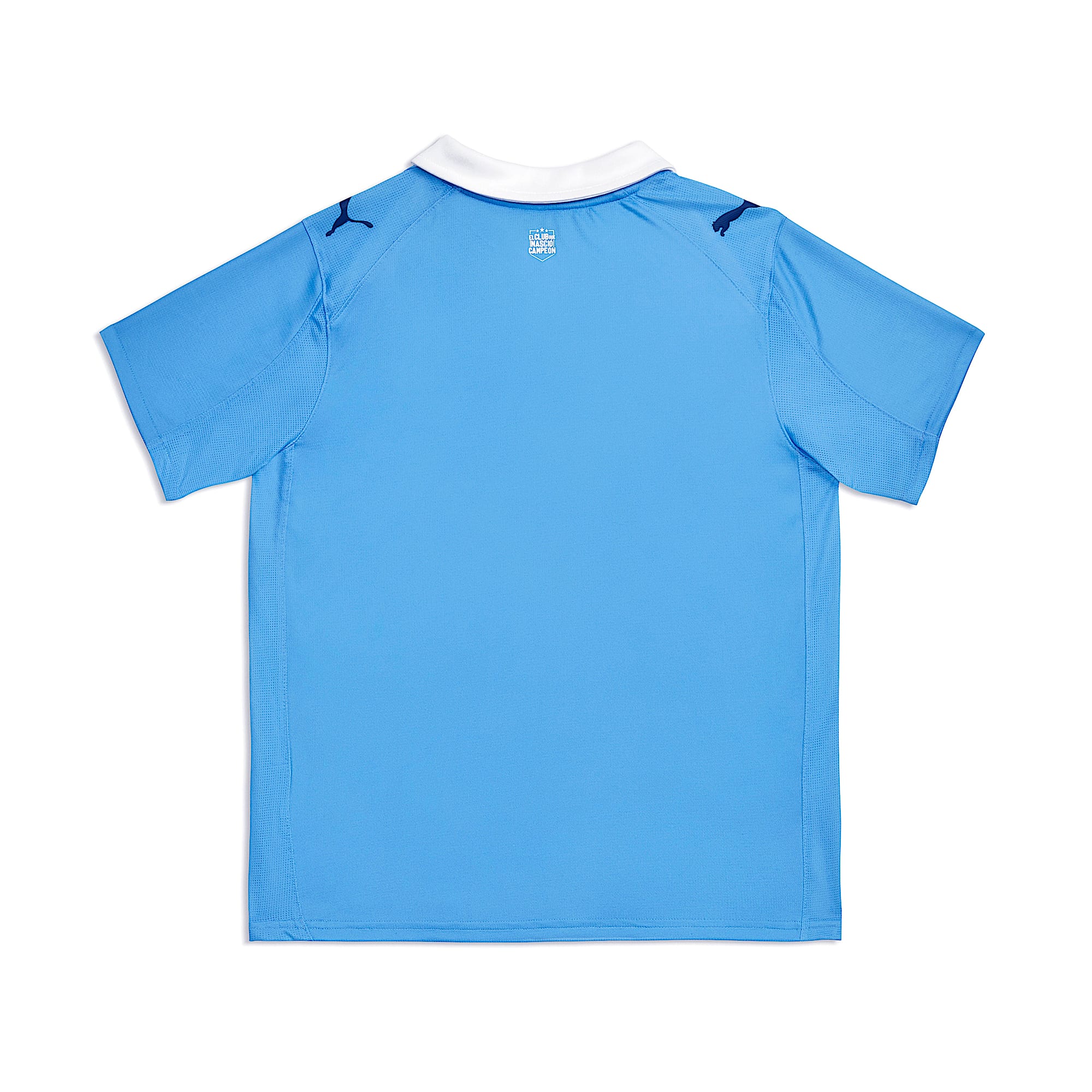 The new Sporting Cristal jersey is produced by Puma and features a Team Light Blue base that reflects the club’s traditional home colours. A white diagonal sash cuts across the front from the shoulder to the lower hem, bordered by double tonal striping running the full length of the sash.