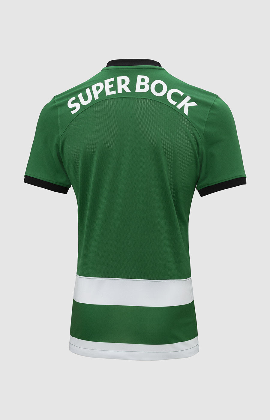 Marking the 20th anniversary of the opening of Sporting’s Estádio José Alvalade ground in the player personalisation on the reverse, next season’s release for the Portuguese Primeira Liga side is relatively simple, with horizontal stripes on the front of the trunk and a largely plain green back matching the raglan sleeve effect.
