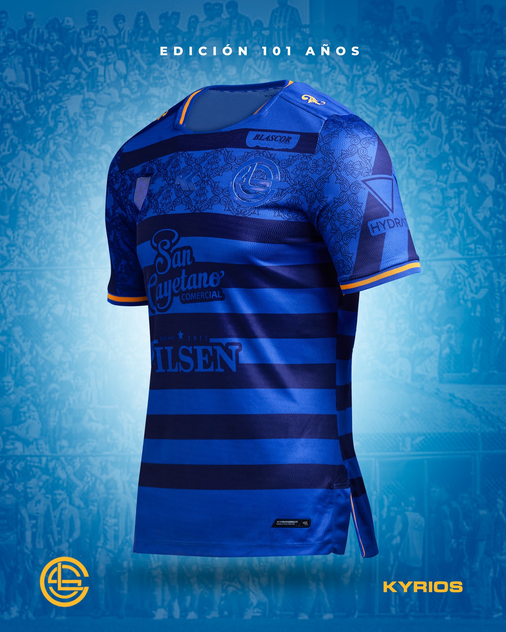 Much of the release, made with recycled materials, is sublimated - including partner logos other than Kyrios’s - and the celebratory creation which nods to El Chanchón’s 1921 beginnings will be combined with blue shorts and socks.