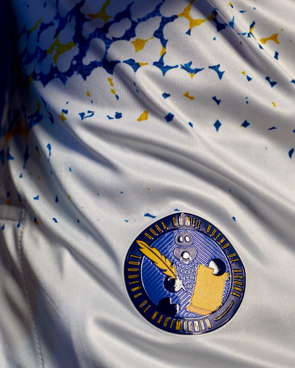 The 2022 change design is in white with yellow and blue patterning as a celebration of renowned Luque poet Dora Gómez Bueno de Acuña.