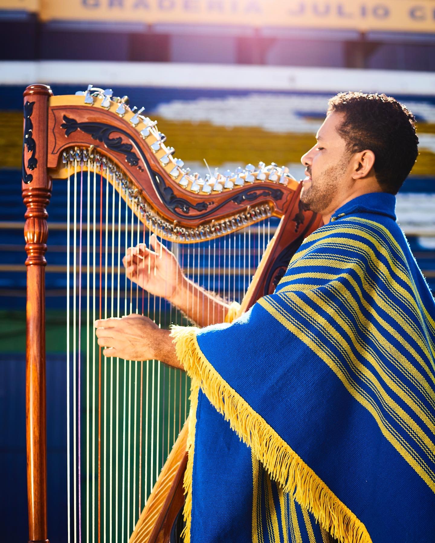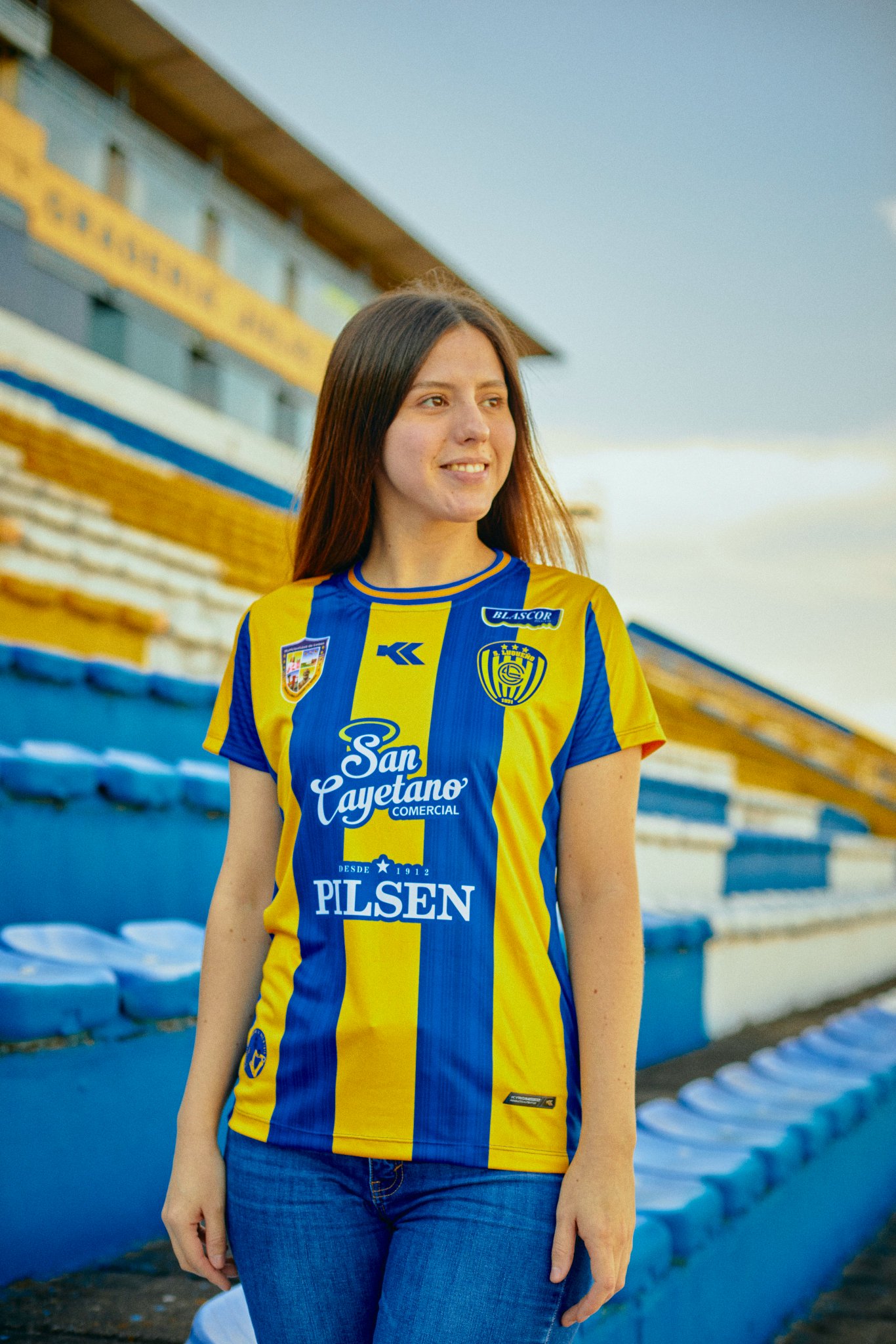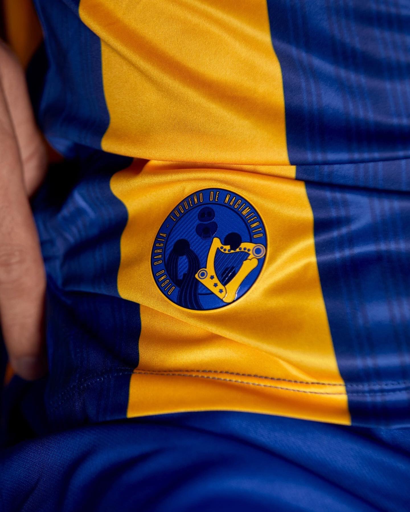 Inspired by the famed local harpist Digno García in the sublimation patterning, the shirt is otherwise relatively understated in its construction and rendering of the yellow and blue stripes.
