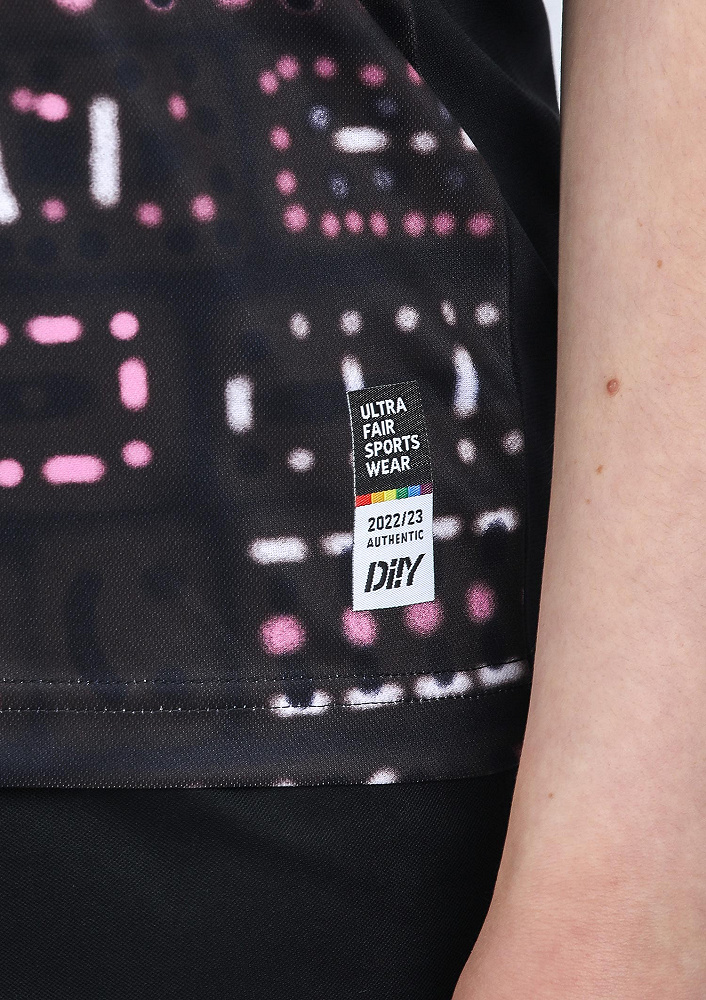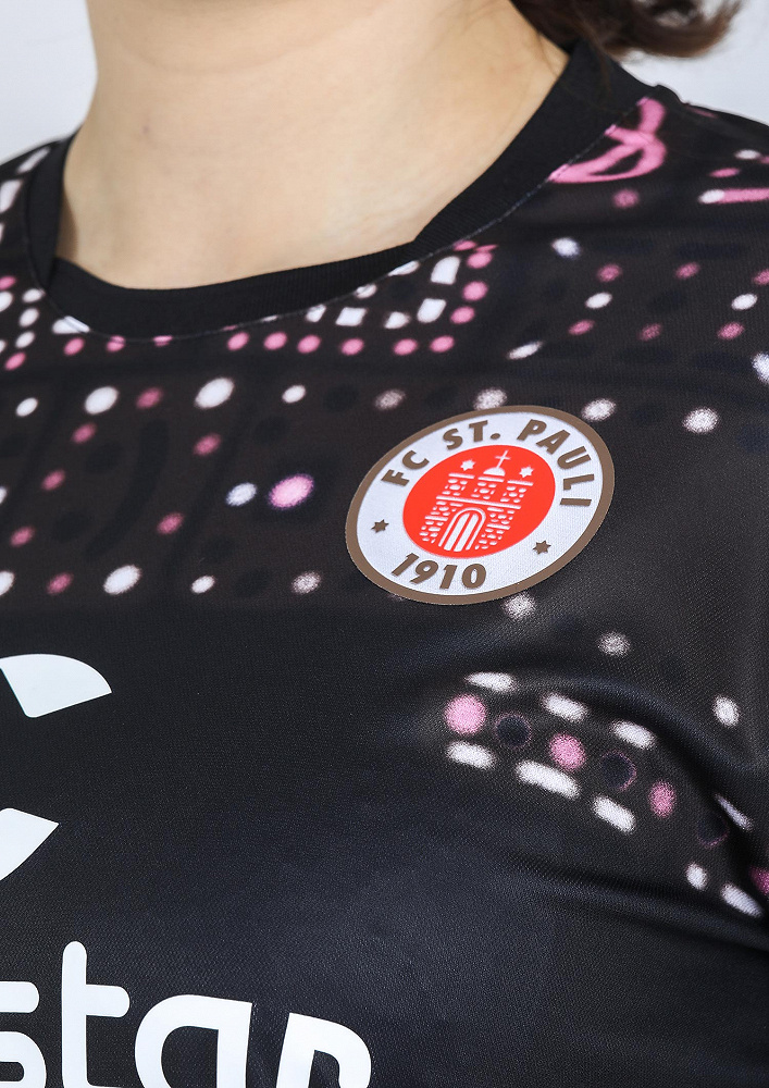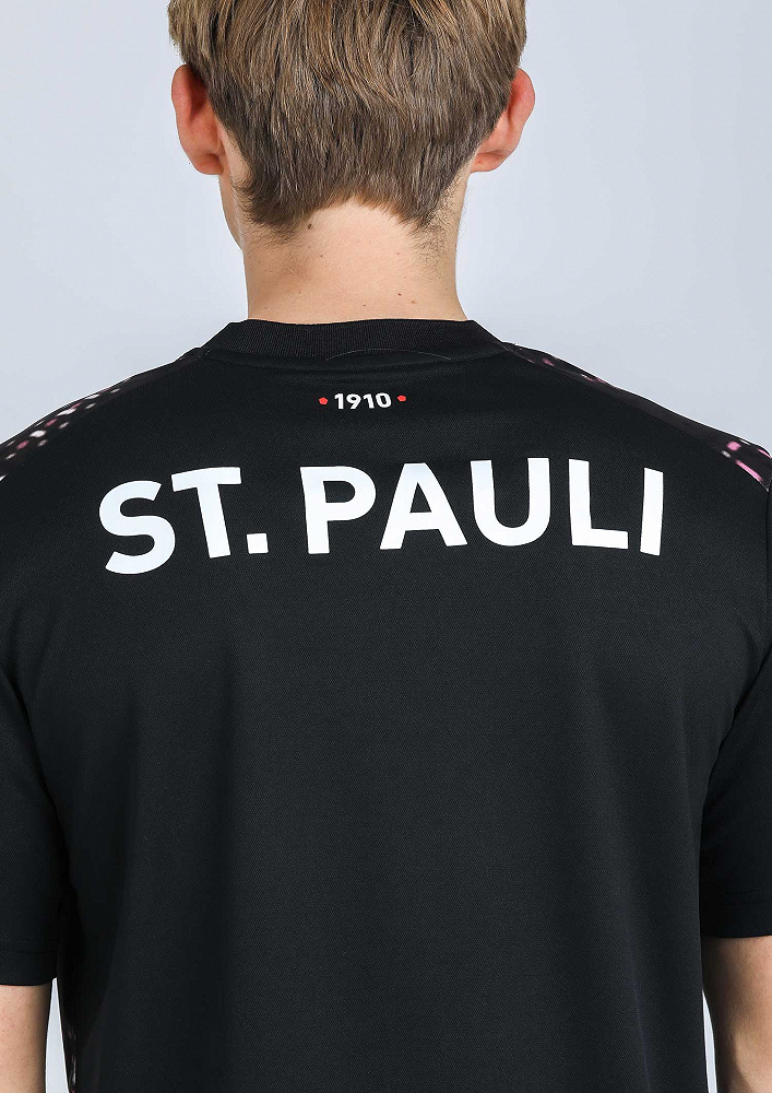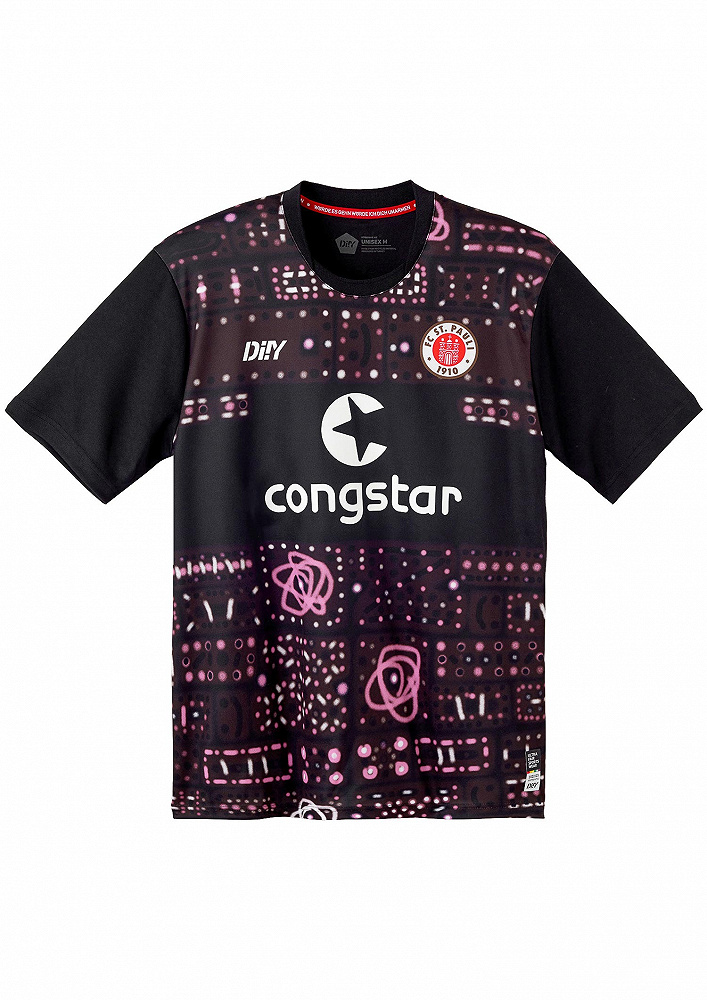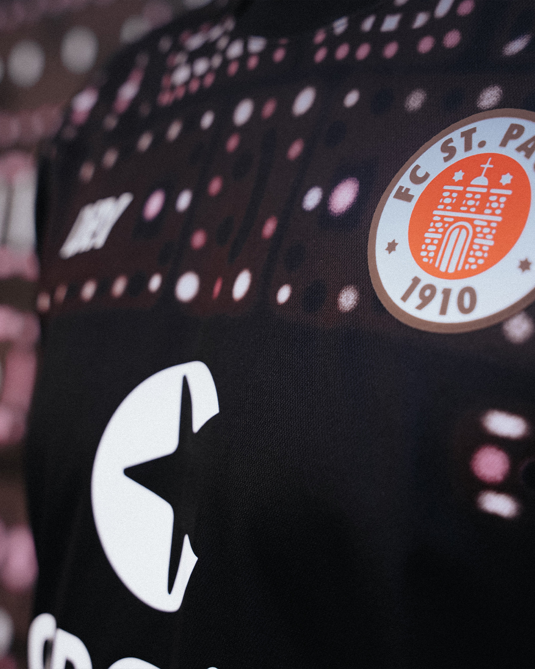 The shirt, which forms a kit with black shorts and socks, will see a percentage of its sales proceeds going to a fund managed by the St. Pauli Fanladen to provide graffiti workshops for children, young people and FLINTA*, with a view to increasing beautification via legal graffiti in the St Pauli area.