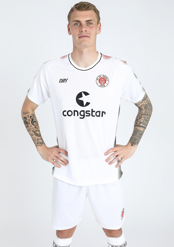 Designed in-house and carrying “DIIY” branding, the white base is decorated with brown and red styled as a nod to a DNA helix - the colours being in the Hamburg-based side’s DNA - while this simple palette extends to other detailing, including the full-colour crest.