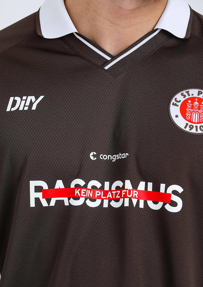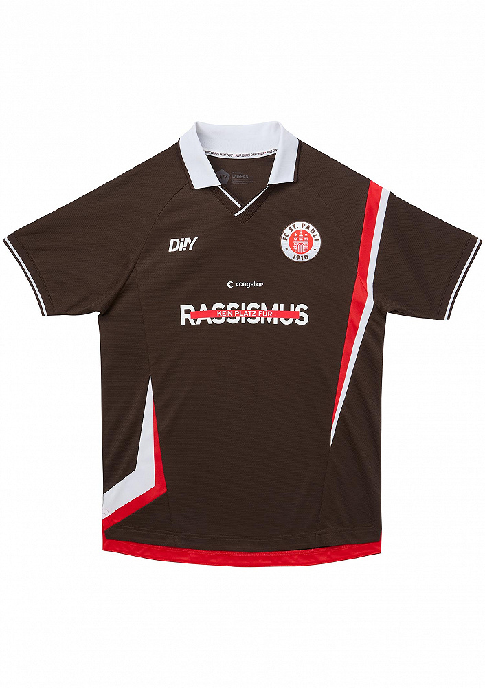 In the Hamburg-based side’s first-choice colours of brown with white and red, and carrying the slogan "Kein Platz für Rassismus" (“No Place for Racism”), the “DIIY” in-house release will be worn against SV Elversberg this weekend.