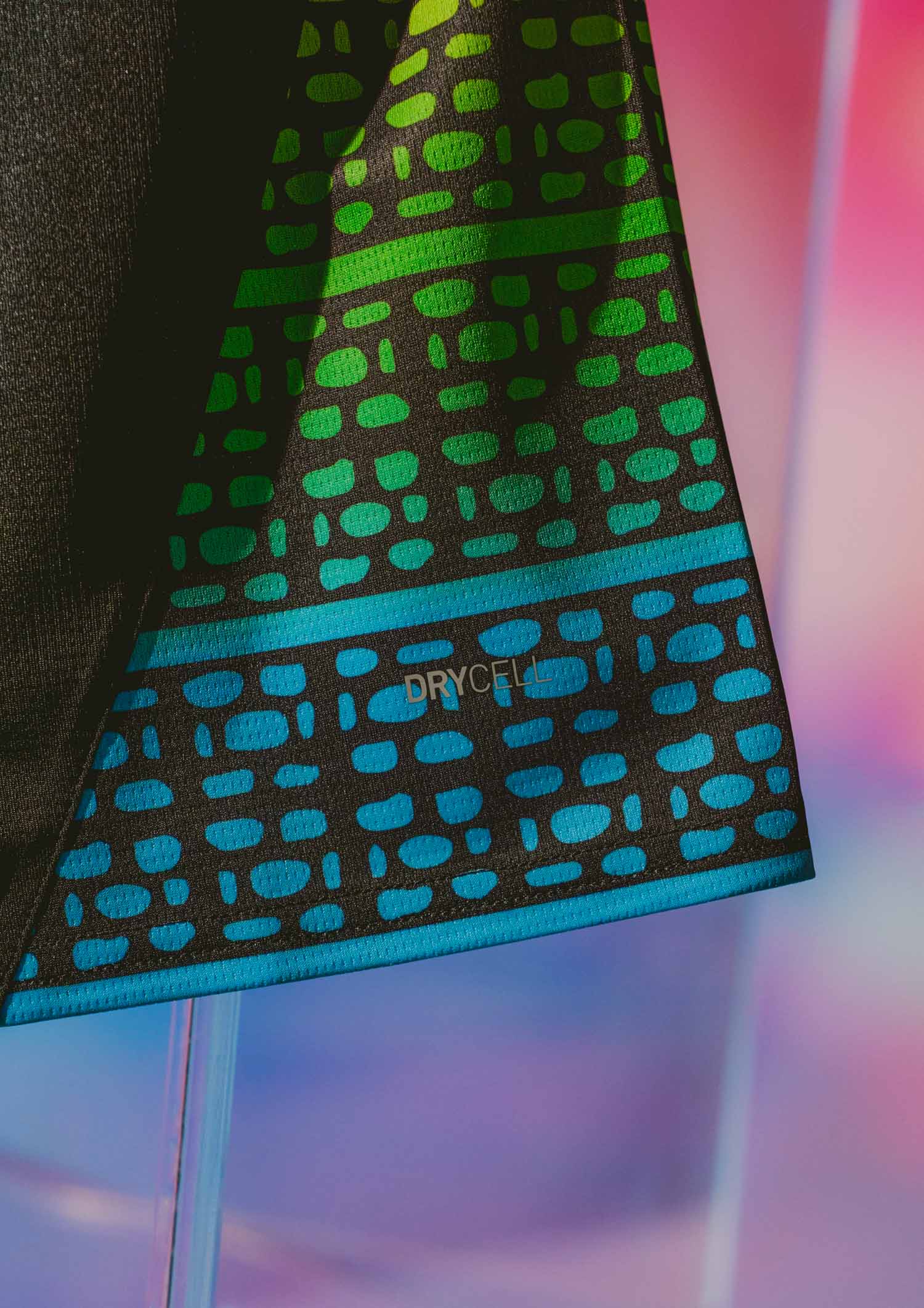 Partner/sponsor logos are in grey/silver and the inclusivity-geared kit is completed with matching black shorts and socks.