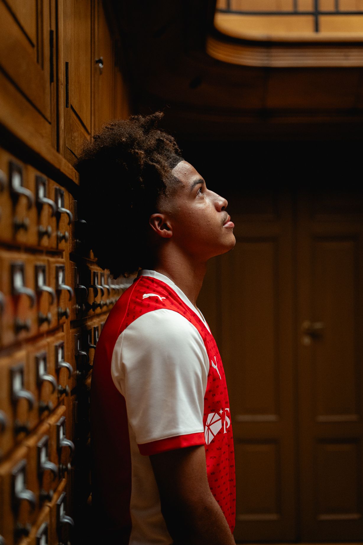 To highlight the connection between history and the future, the kit launch took place at the Carnegie Library in Reims. Players from the academy were involved in the campaign, linking the next generation to the club’s legacy.