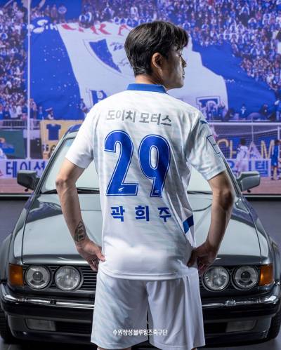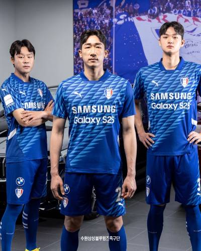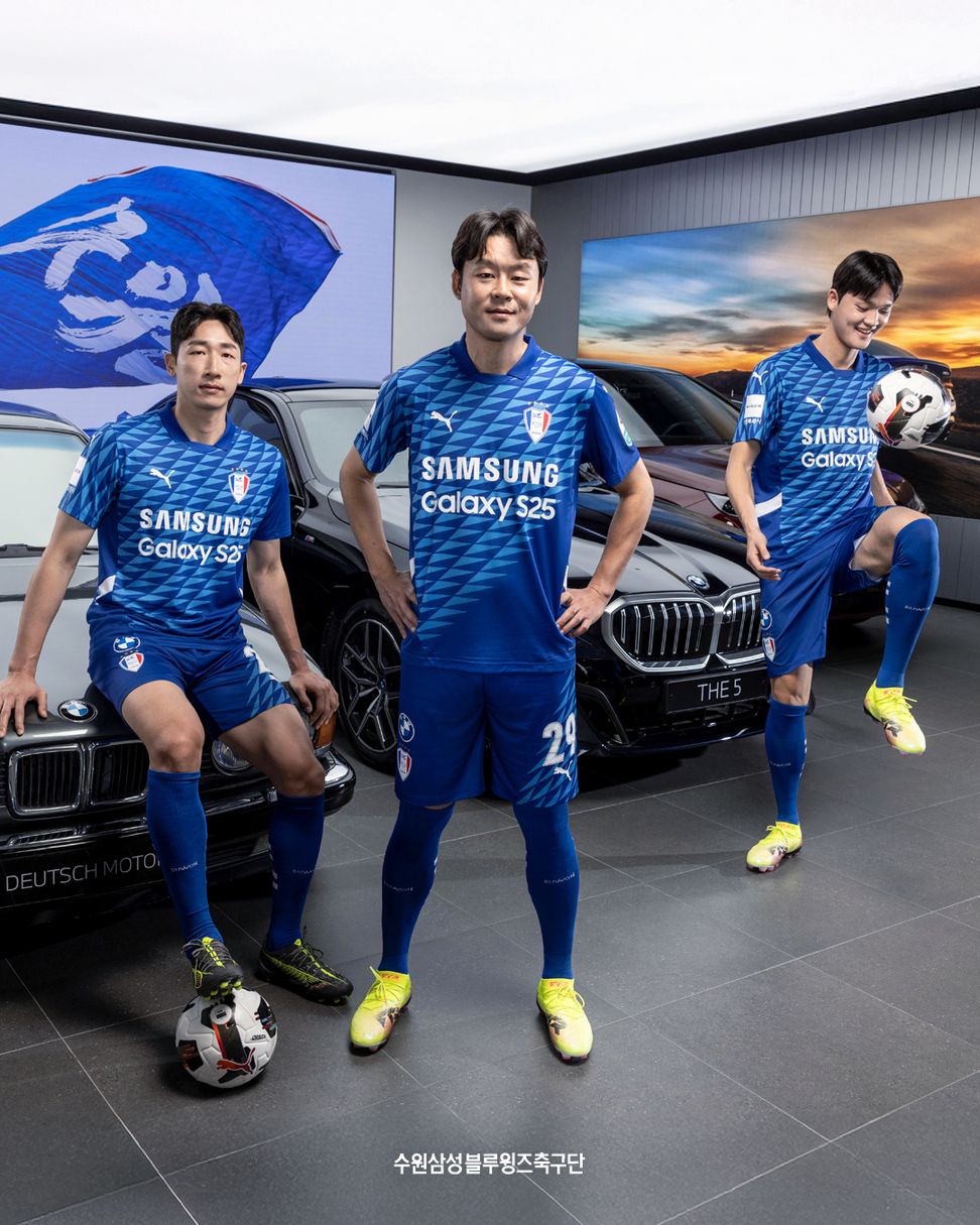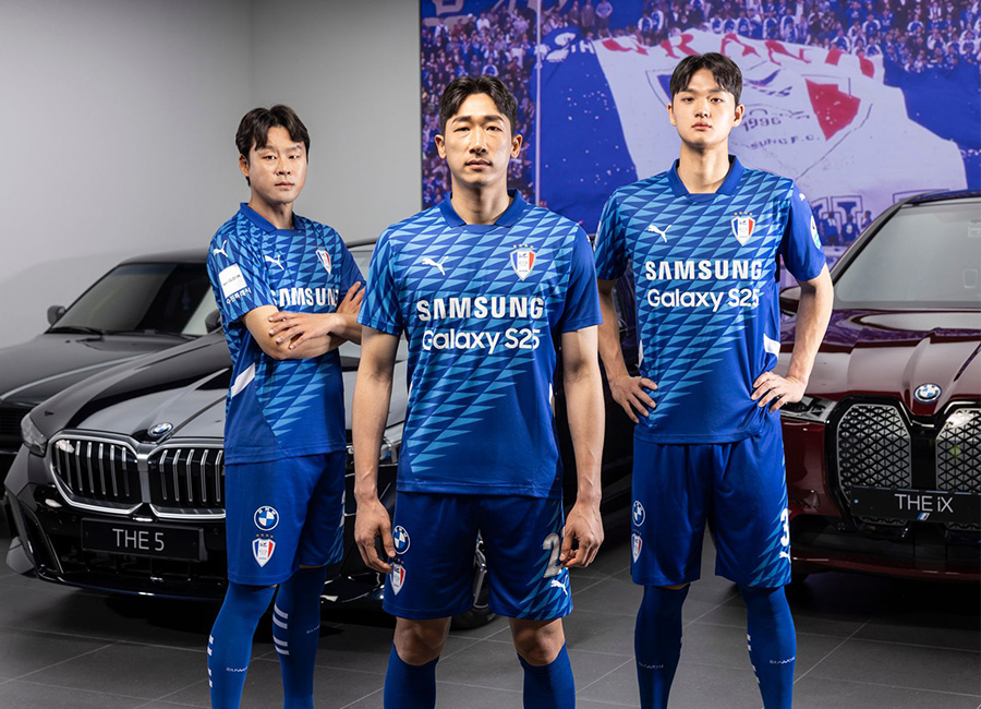 The kits were unveiled in a photoshoot with club sponsor Deutsch Motors at Deutsch Auto World in Suwon. Representing three generations of the club were former defender Kwak Hee-ju, current captain Yang Hyung-mo, and rising talent Ko Jong-hyun. Three BMW vehicles also appeared in the shoot: a classic 1990s 735iL representing the club’s founding year, the latest 5 Series i5 symbolising the present, and the fully electric iX M60 reflecting a sustainable future.
