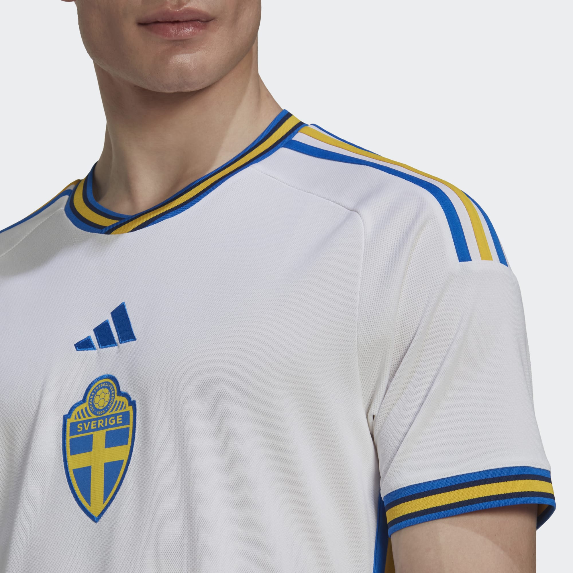 Forming a completed kit with shorts and socks that complement its look, the shirt is the first white change the Swedes have had in 20 years and recalls the look “Sverige” - as the country’s name appears on the back of the neck - sported on multiple occasions in their successful USA ’94 World Cup campaign.