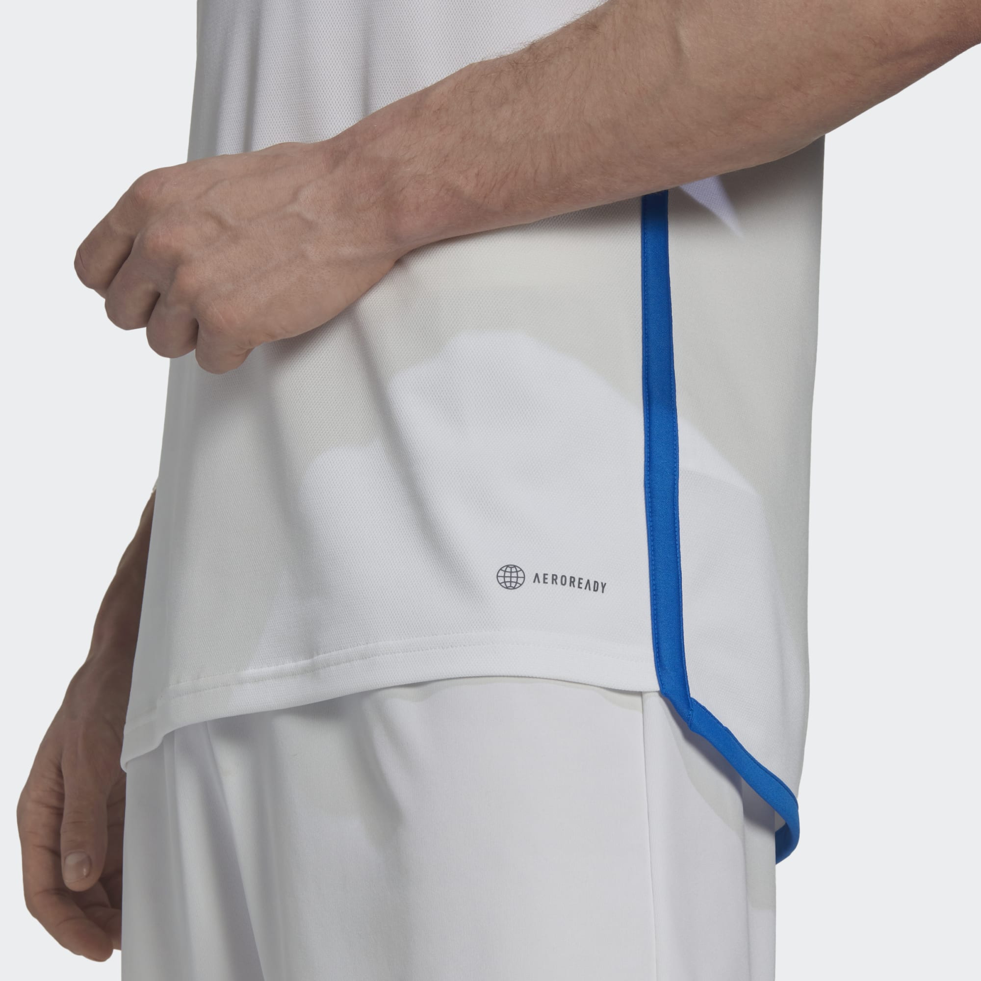 The crest is in full colour and centrally placed, with the adidas “3 Bar” Performance logo above it.