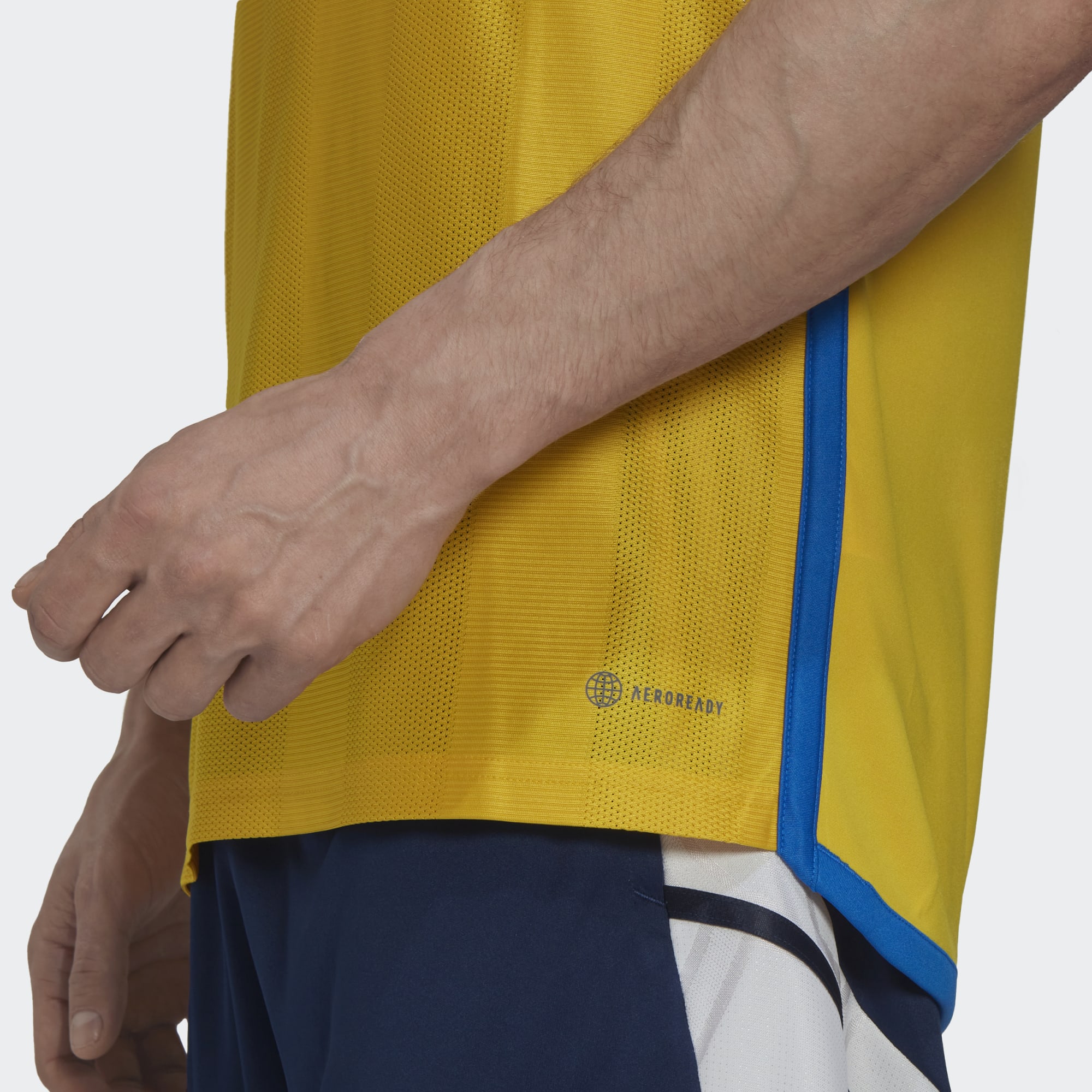 The 2022 adidas design is in yellow with jacquard ghost striping and centralised logos.