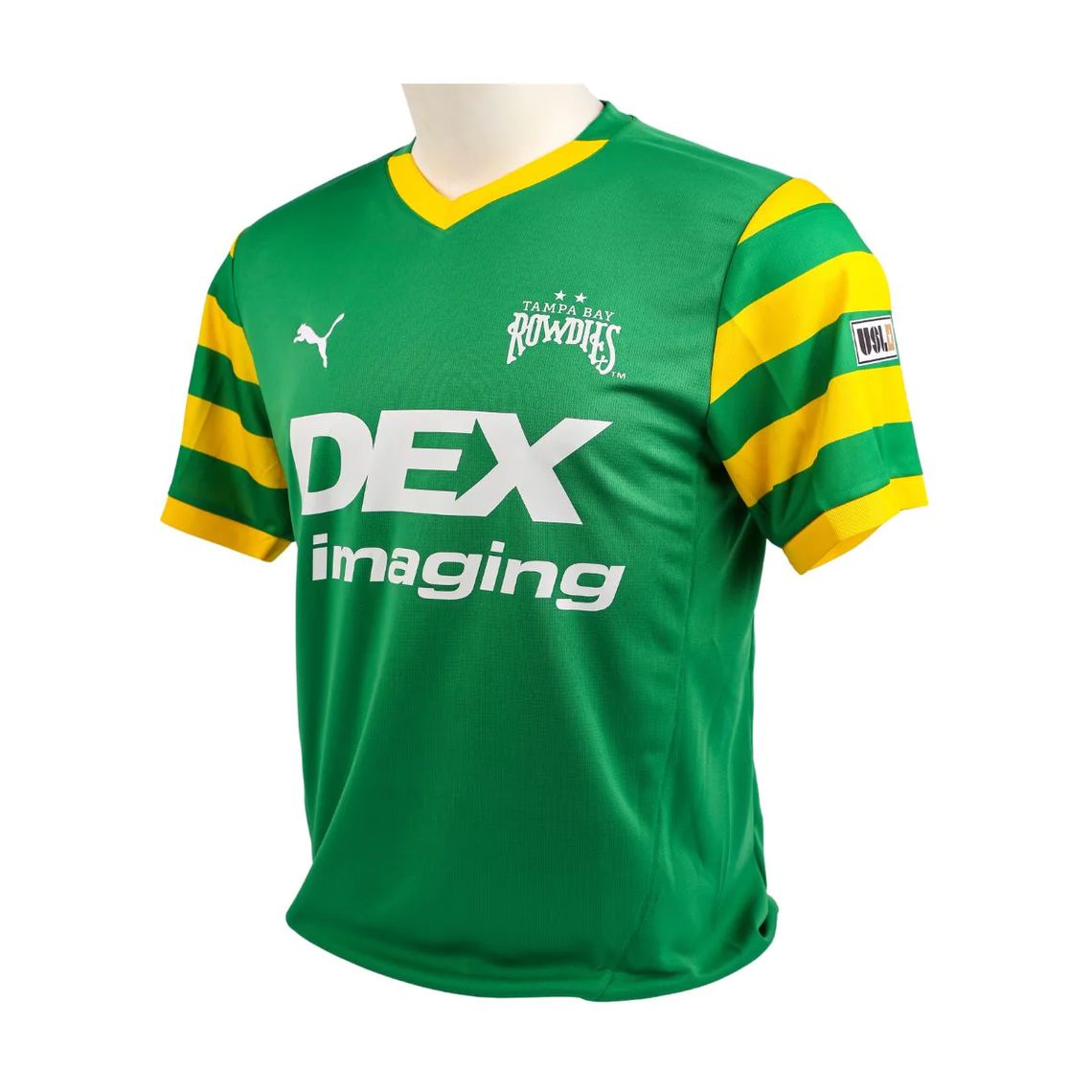 DEX Imaging continues its partnership with the Rowdies as the front of kit sponsor for another season, accompanied by the Puma Logo, the Rowdies Two Star logo, and the USL Official Patch.