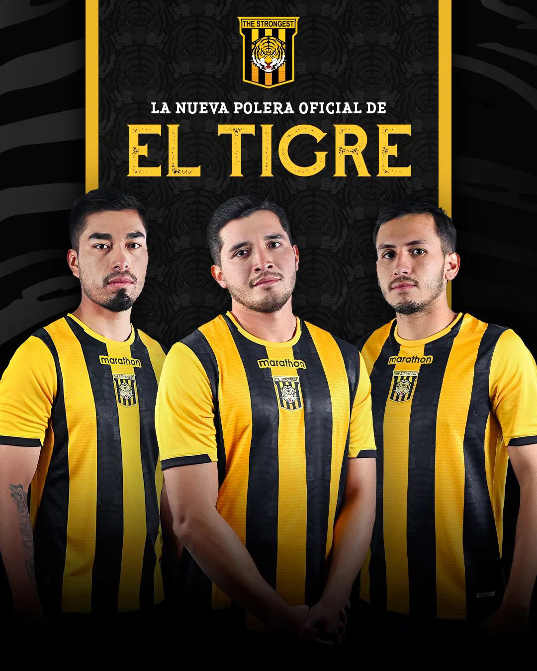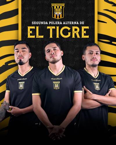 The new “Tigre” home shirt from Marathon is in the famous yellow and black stripes with a sublimated tiger-face pattern and centralised logos, the away is in white with black stylised striping again nodding to the club nickname, and the third is in black with gold neck and cuffs.