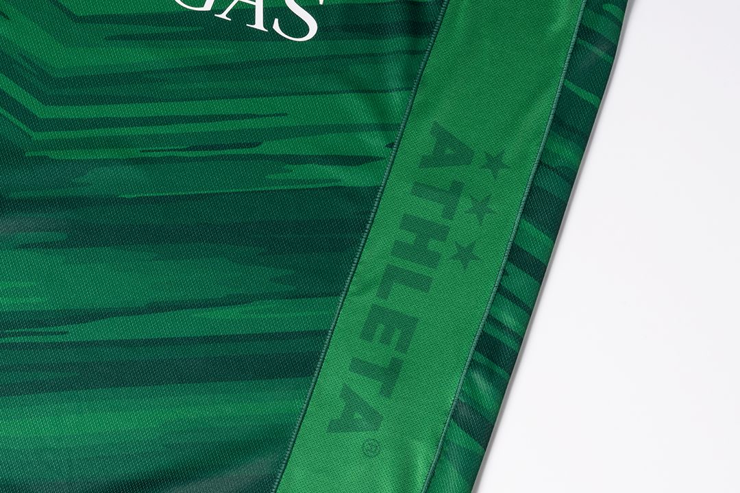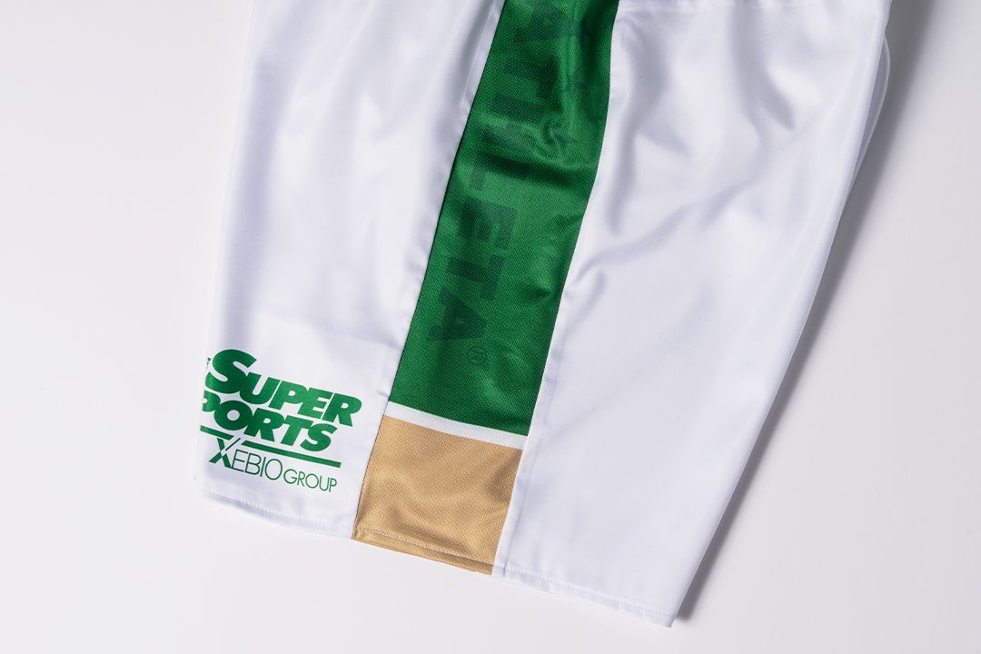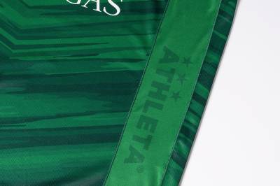 The ultra-modern crest is present and correct on the shirt, with the kit being completed with white shorts and green socks.
