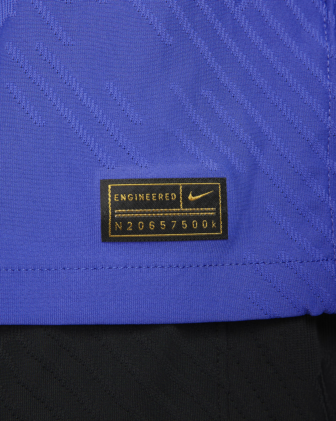 The Away shirt is a deep lapis blue shade finished with black sleeves and flashes of volt on the neckline and cuffs, with the Club’s famous cockerel emblem front and centre.