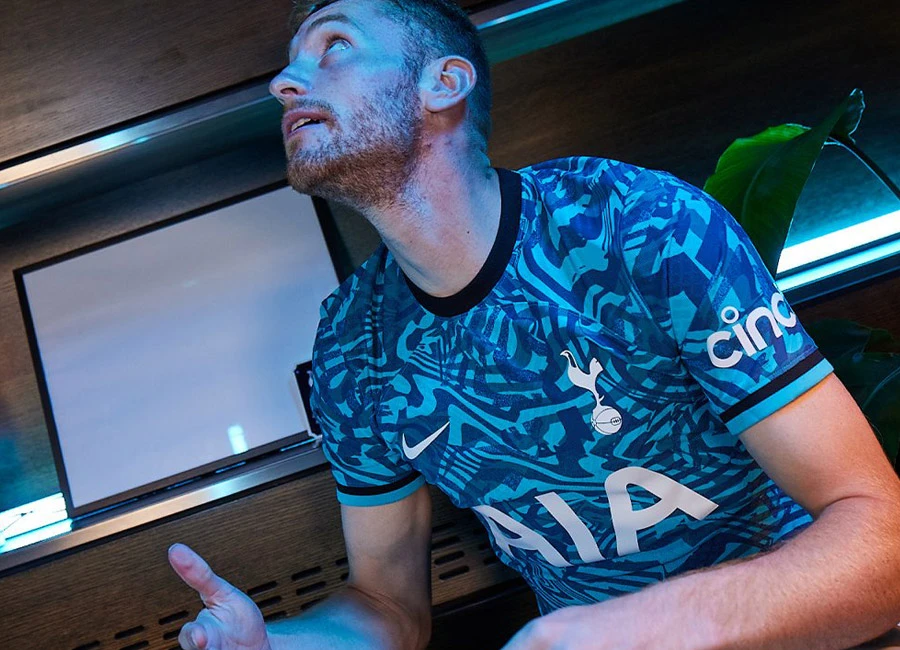 The Third shirt’s striking rift blue and mystic navy print is inspired by Tottenham’s ever-evolving DNA and the popular Nike TN sneaker range.
