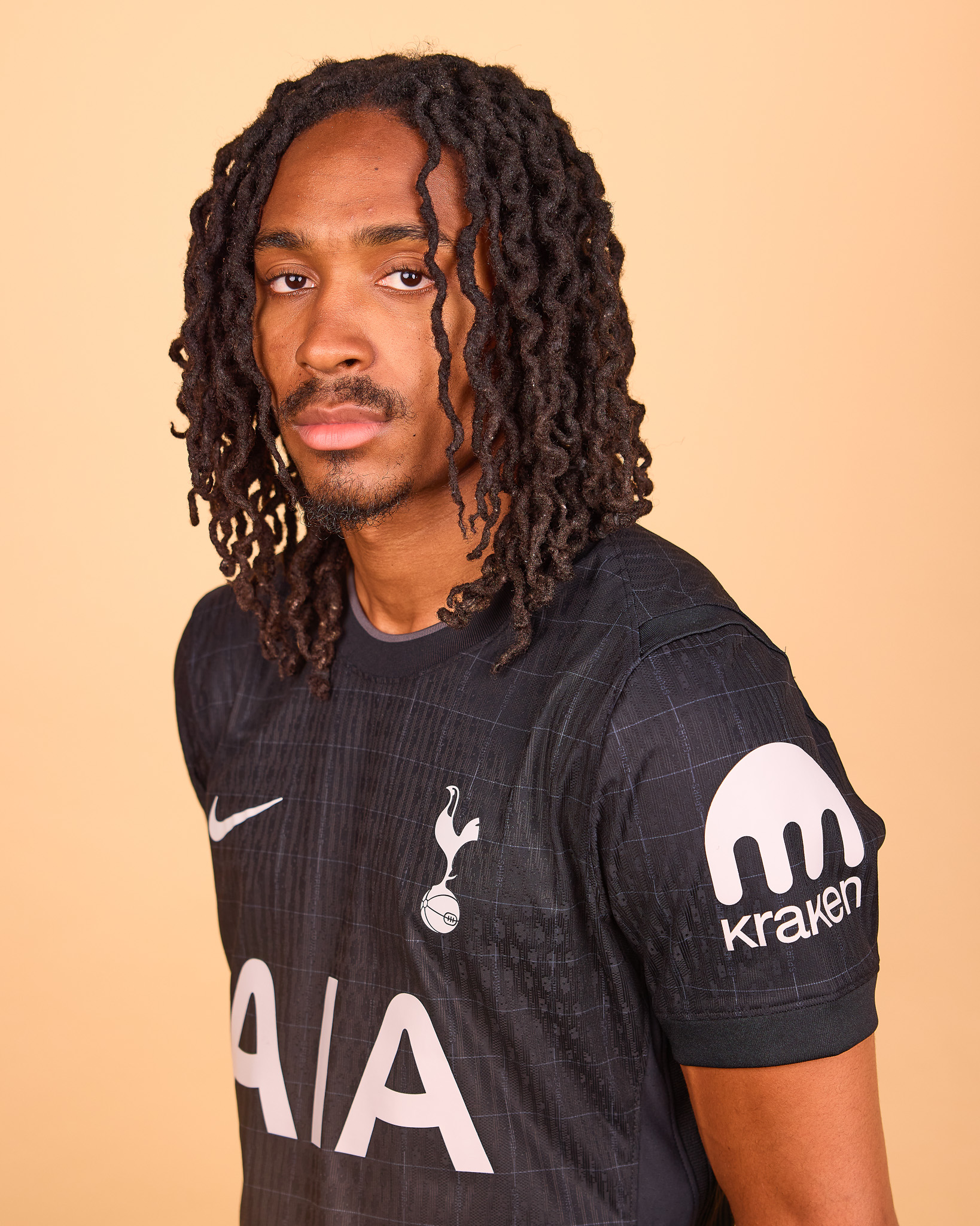 The shirt’s pattern adds a tonal layer, visible across both front and back, while the interior collar includes a “Spurs” wordmark. The kit will be worn in domestic and European away fixtures as Tottenham return to the Champions League for the upcoming season.